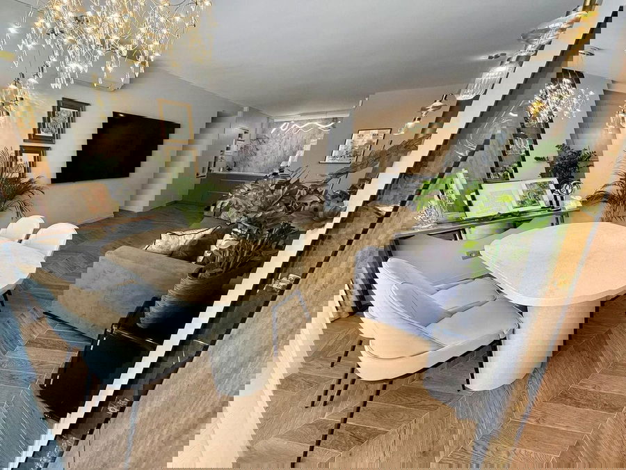 This exceptional apartment features 3 generously sized bedrooms and 2 well-appointed bathrooms, all in excellent condition. Its modern design, combined with fully furnished interiors featuring stylish, contemporary furniture, creates a welcoming atmosphere perfect for comfortable living. The open-plan living area is bathed in natural light through large windows, offering stunning views of the vibrant urban landscape.