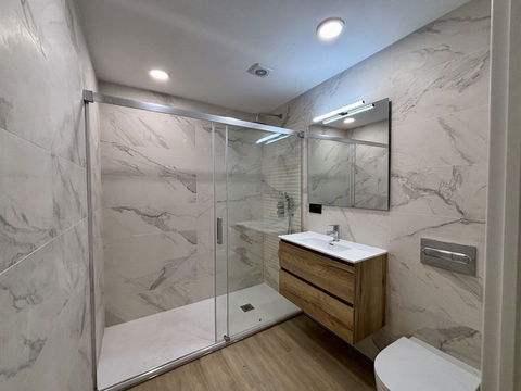 • Modern and functional bathrooms, equipped with high-quality showers and glass enclosures.