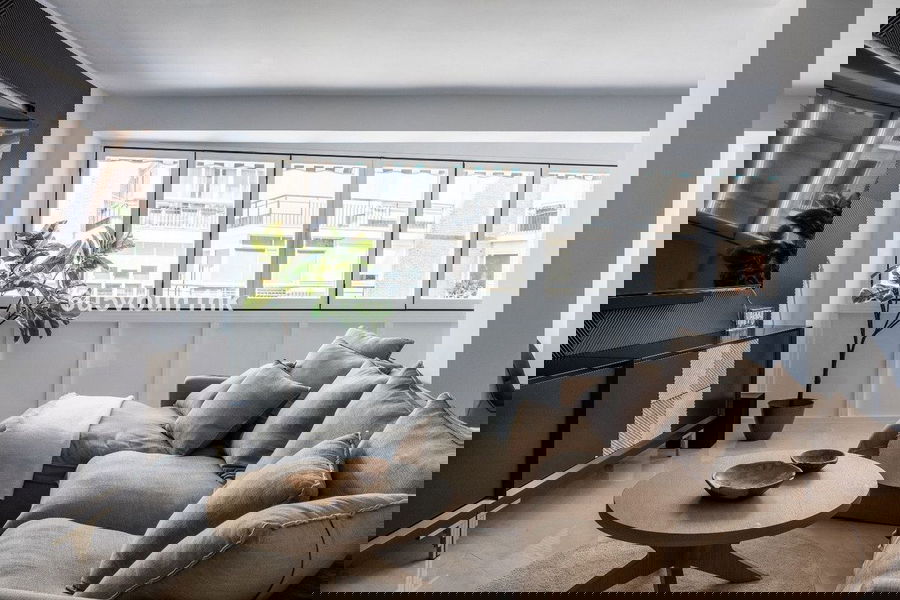 This exquisitely renovated apartment is situated in a prime location in the heart of Soho, adjacent to the port. Nestled within an exclusive community with concierge service, it does not permit touristic licenses. The apartment features three bedrooms, including one with an ensuite bathroom, and all rooms are bathed in natural light.