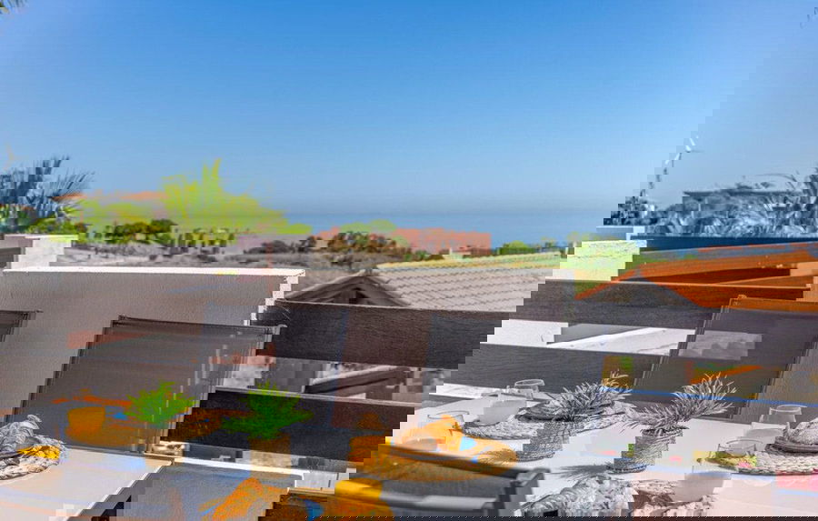Step into a bright, open-plan living space that flows seamlessly onto a spacious private terrace — perfect for al fresco dining, entertaining, or simply relaxing in the sunshine while enjoying spectacular sea and mountain vistas.