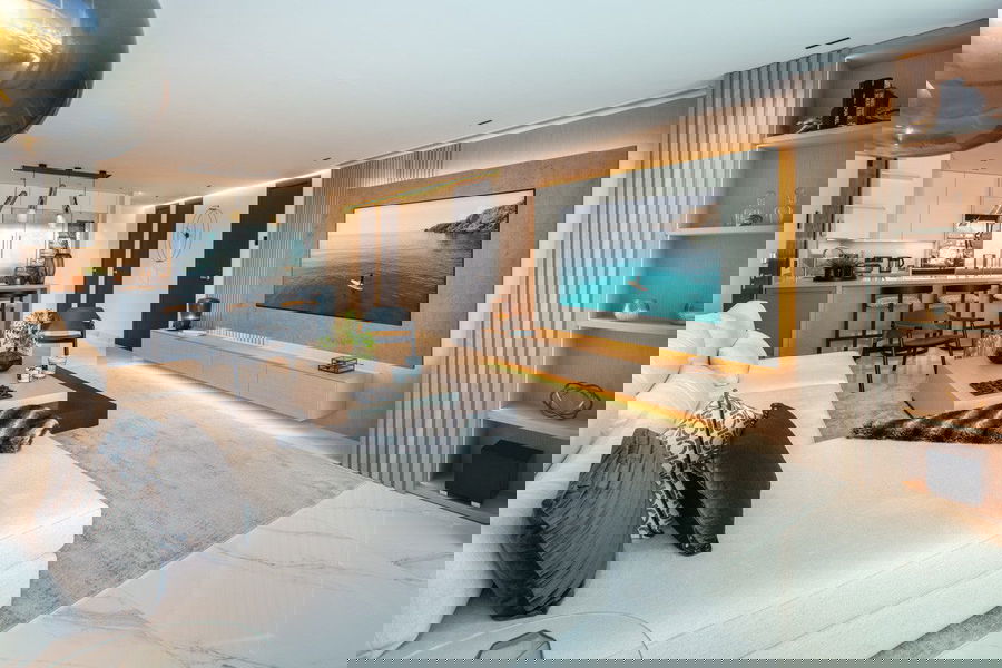 Discover top-of-the-line features throughout the home, including an open concept living area with almond wood paneling and LED lighting that leads directly to an outdoor terrace with views of the port, a modern fitted kitchen with high-end Gaggenau appliances, and 3 opulent bedrooms, each with an en-suite bathroom. Discover a luxurious apartment that puts the best of Marbella at your feet.