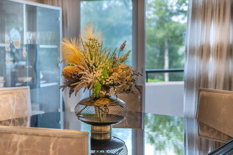 Inside, the apartment offers a sense of spaciousness and sophistication. With three generously sized bedrooms and three well-appointed bathrooms, there's ample room for families or those who enjoy entertaining. The heart of the home is the expansive living and dining room, with an east-facing terrace, which features elegant glass curtains, allowing for year-round enjoyment regardless of the weather.