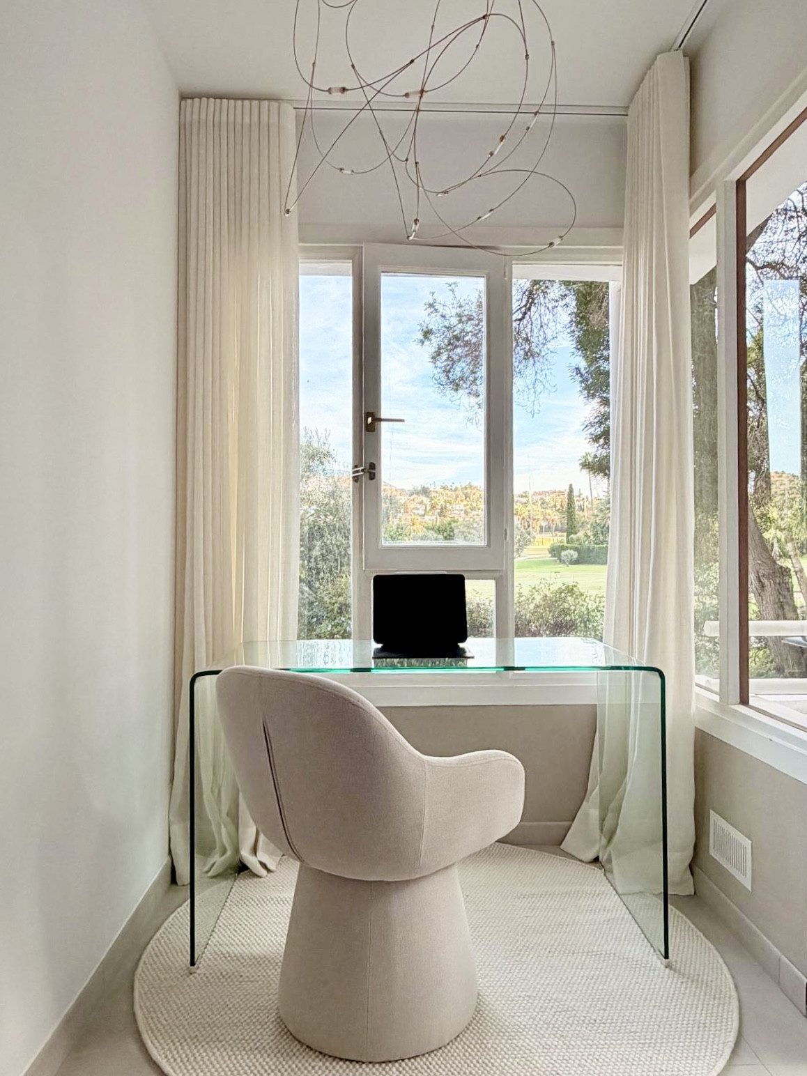 It has three bedrooms and three bathrooms, all generously sized. The apartment is located directly next to Los Naranjos Golf Course, making it ideal for golf enthusiasts, with other well-known courses like Las Brisas and Aloha nearby. It is also conveniently close to Puerto Banús, local beaches, international schools and a wide range of dining and shopping options in Nueva Andalucía.