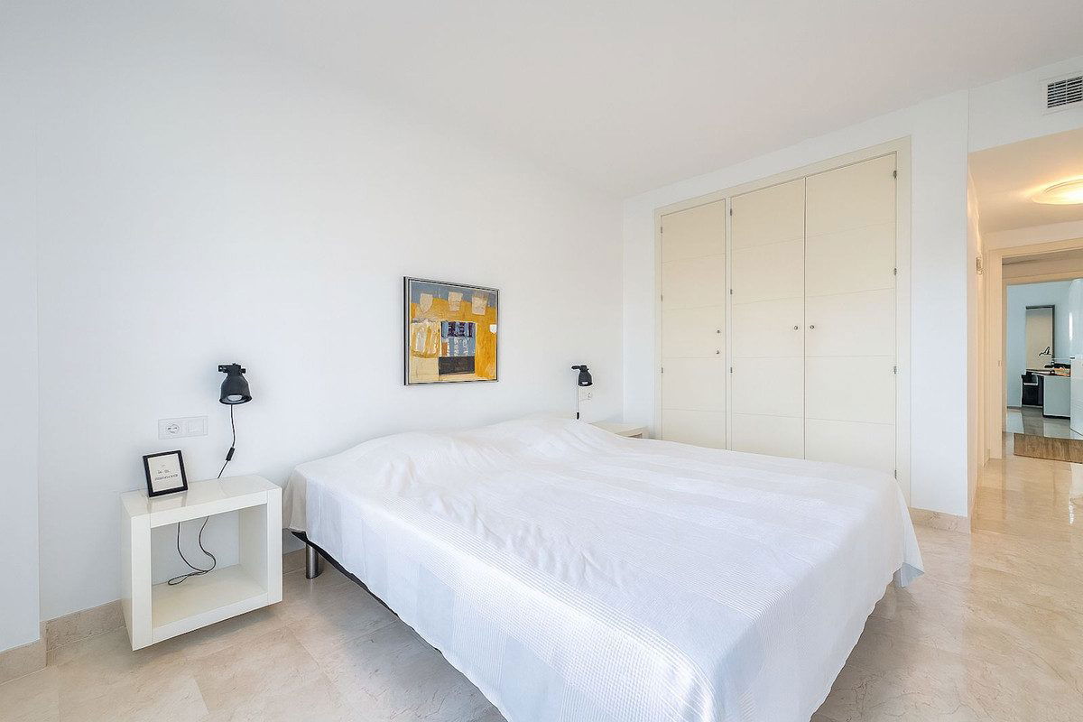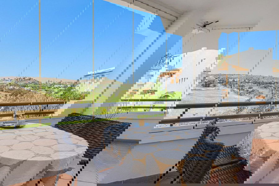 The bright and airy living and dining space flows effortlessly onto a generous private terrace, ideal for enjoying al fresco meals or simply relaxing in the warm Costa del Sol sunshine. The terrace is fitted with sliding windows, which can be opened completely to create a true open-air space in summer, or closed to provide a cozy sunroom during the cooler winter months, making it a year-round extension of the living area.