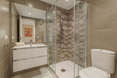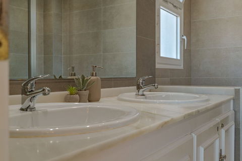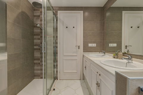 There are three generous bedrooms, all with built-in wardrobes and new mattresses. The master bedroom includes a stylish en-suite bathroom with a double sink and a large walk-in shower. Both bathrooms have been tastefully renovated with modern finishes.