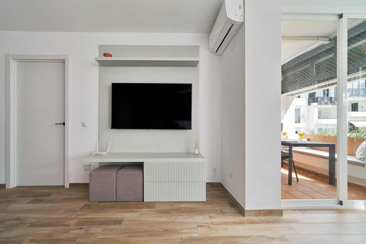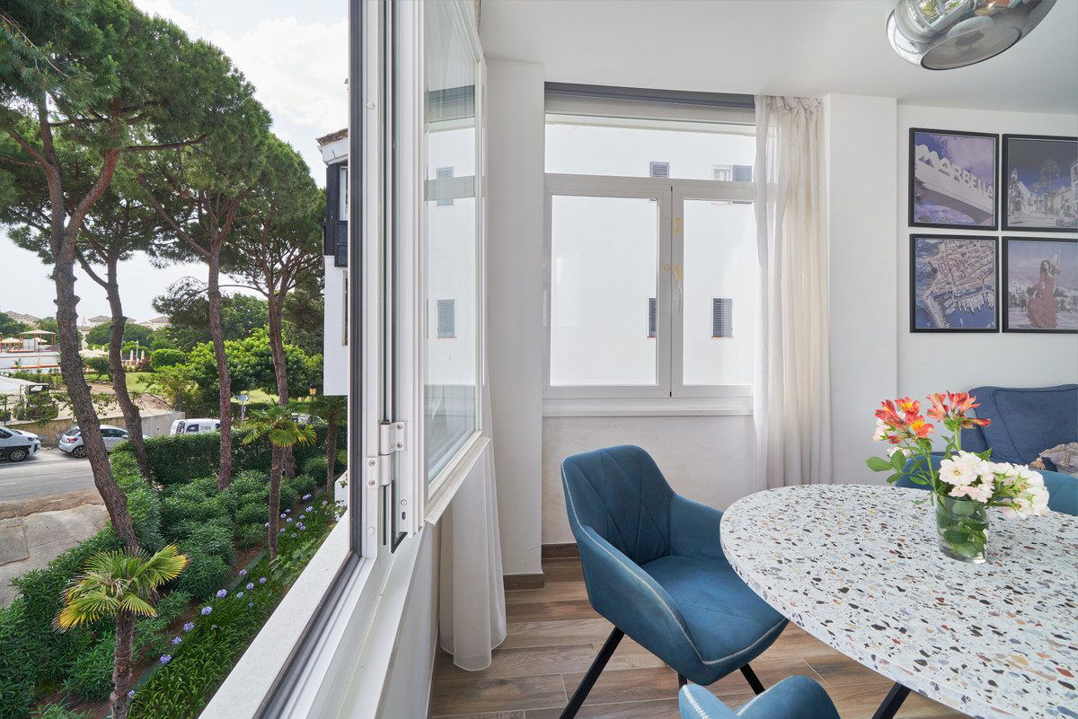 Just moments from the shoreline, this elegant 2-bedroom, 2-bathroom apartment is nestled within the sought-after gated community of Jardines de las Golondrinas, just 200 metres from one of Marbella's finest sandy beaches. Set in the prestigious area of Elviria, and adjacent to the grounds of the iconic Don Carlos Hotel, the apartment offers a refined blend of comfort, privacy, and Mediterranean charm.