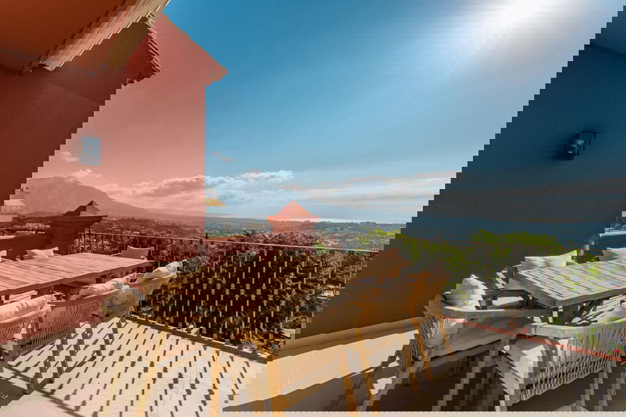 Living spaces are open and connected, with the lounge and dining area flowing seamlessly into a state-of-the-art kitchen fitted with Gaggenau appliances Bespoke wood carpentry adds warmth and elegance, while expansive glass doors lead directly onto terraces designed for outdoor living. These spaces are perfect for entertaining, al fresco dining, or simply unwinding while overlooking the surrounding landscape. A dedicated 20m² storage room provides ample space, ensuring interiors remain uncluttered and refined.