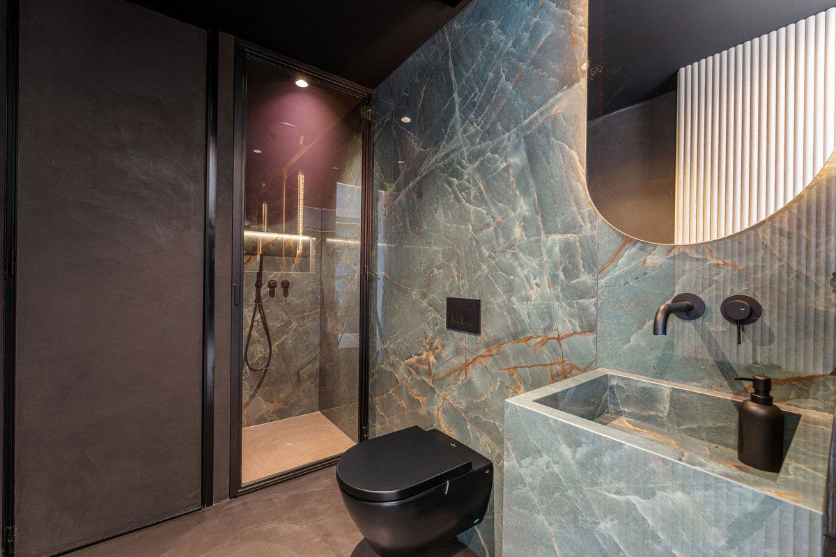 The duplex is arranged across two floors. The ground level hosts three beautifully designed bedrooms, each with ensuite bathrooms that combine style with convenience. An additional guest toilet ensures functionality for visitors. The upper floor is devoted to the master suite, where a private terrace and Jacuzzi create a sanctuary of privacy and relaxation, perfectly complemented by stunning views across Benahavís and the coastline. In total, the property offers four bedrooms, one of them is set up as an office, three bathrooms, and a guest toilet, making it ideal for families or those who enjoy hosting guests.