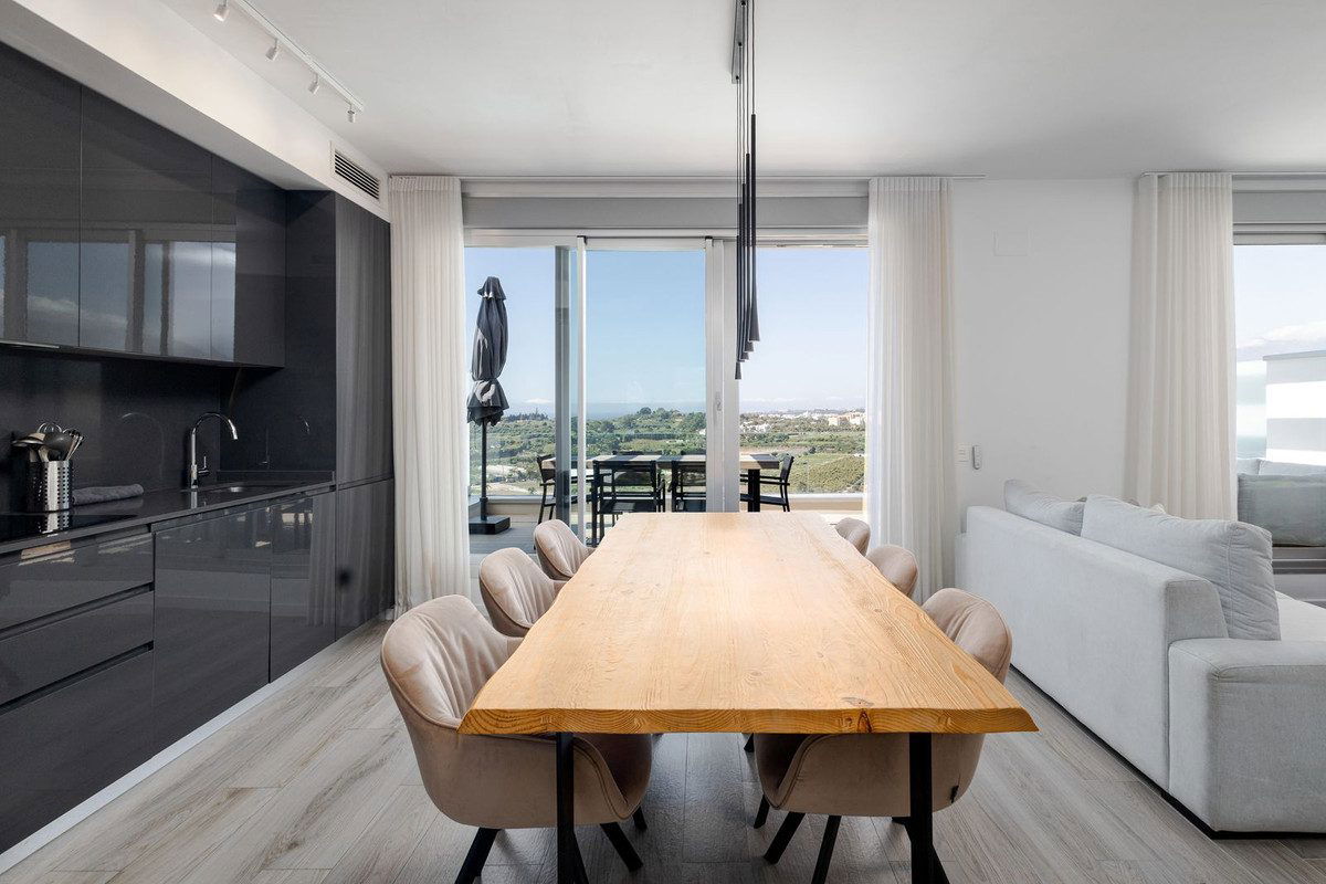 This elegant 3-bedroom, 2-bathroom residence, built in 2021, boasts uninterrupted panoramic views stretching from the glittering Mediterranean Sea to the dramatic Sierra Bermeja mountains.