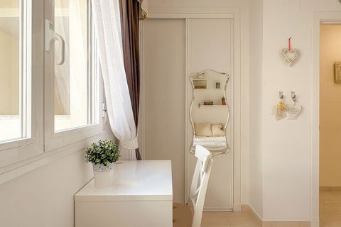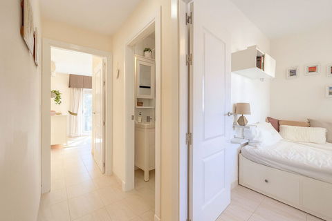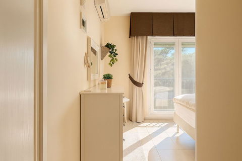 This floor also houses the two bedrooms; the main one, with its own small balcony and en-suite bathroom, and a second bedroom served by an independent second bathroom.
