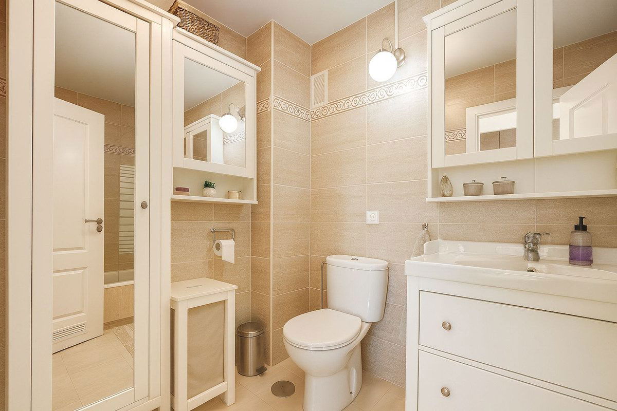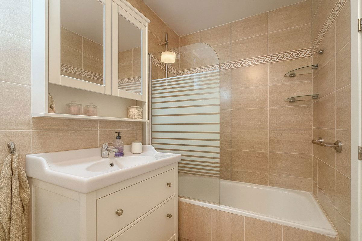The main floor consists of an elegant entrance hall that leads to a charming kitchen and a living/dining room which connects directly to a terrace and balcony, from where one can already appreciate the magnificent view of the Fuengirola coast and the Sierra Nevada mountains.