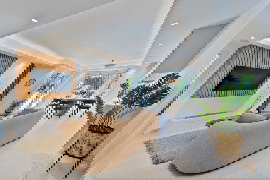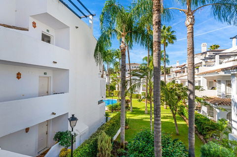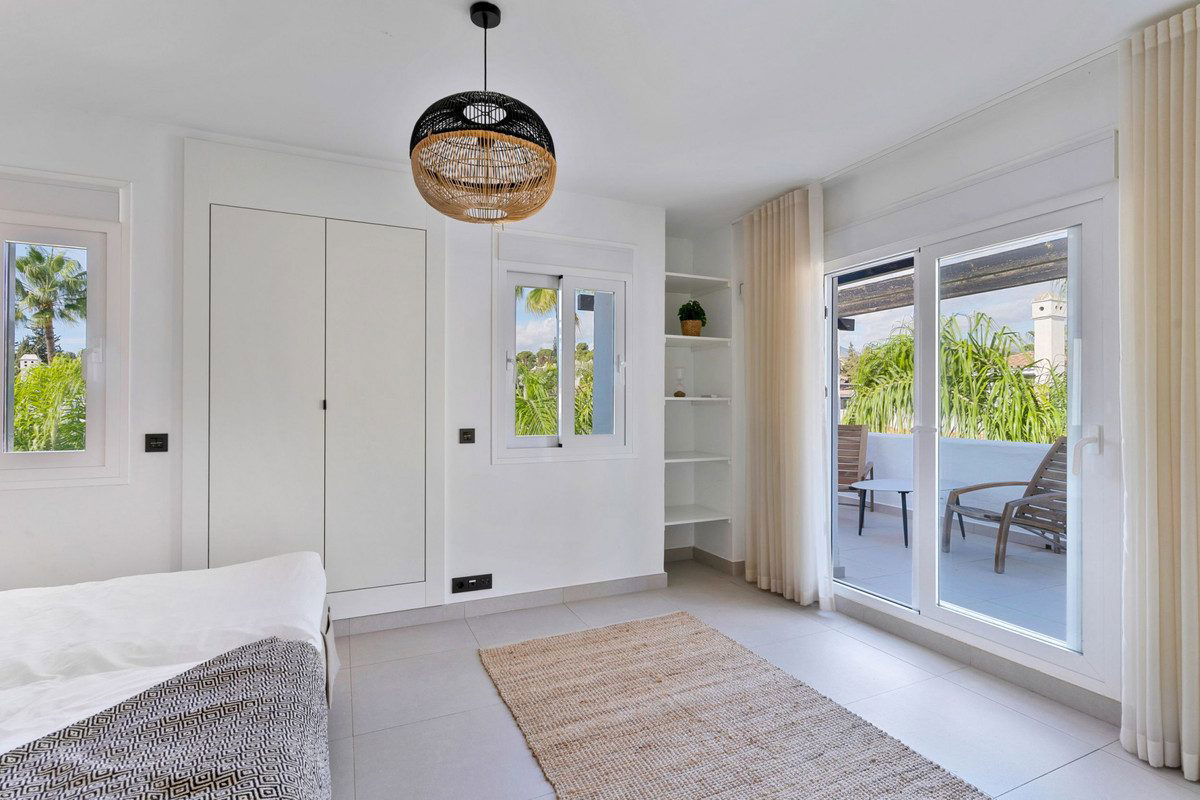 This duplex penthouse is located in Los Naranjos de Marbella, in the popular area of Nueva Andalucia, Marbella, Malaga. The property offers three bedrooms and three bathrooms, providing comfortable living space for families or groups.