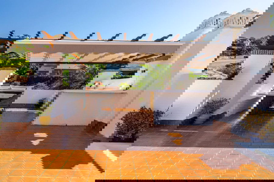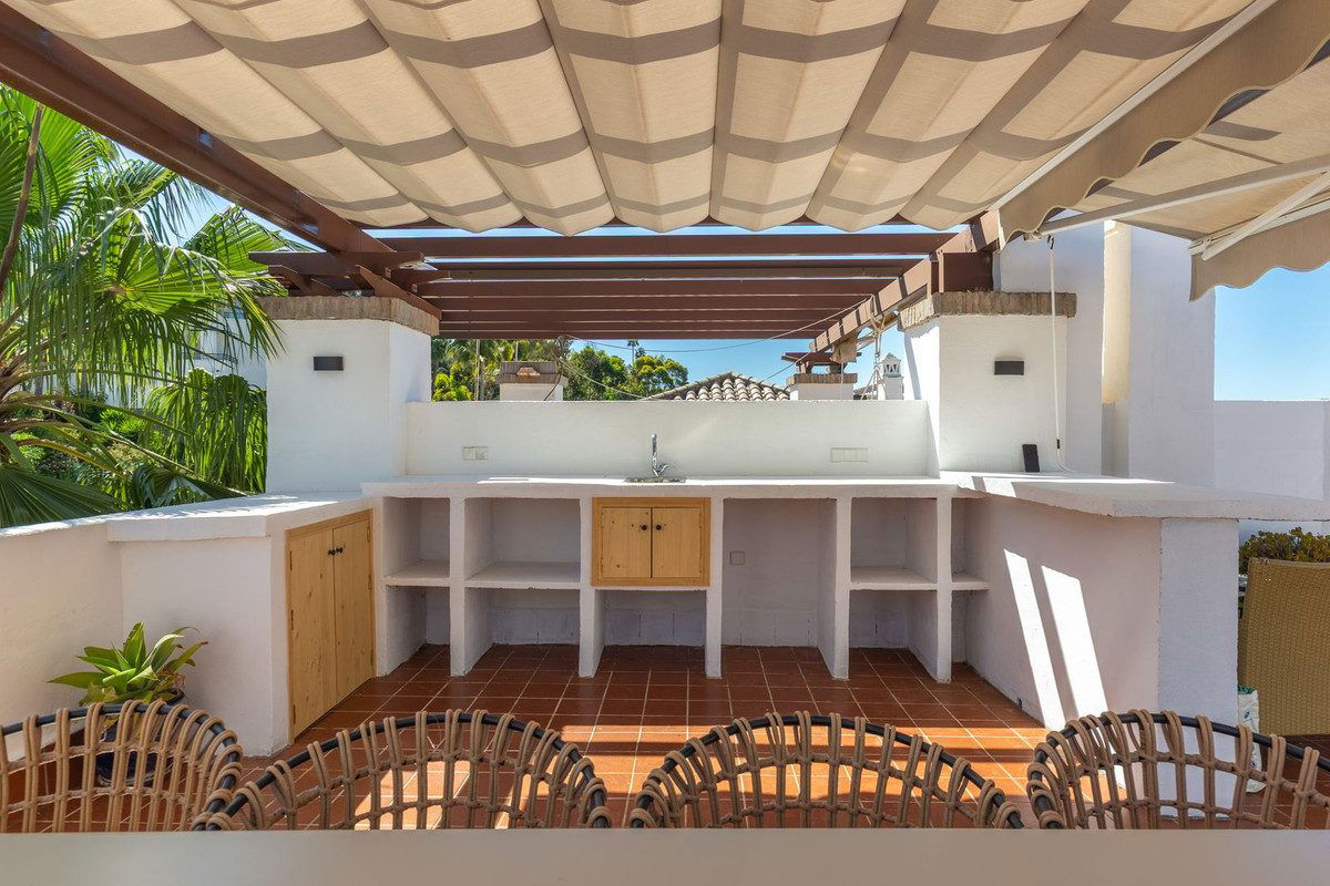 This beautiful apartment in El Lago, Los Arqueros, has an area of 178 square meters, of which 79 square meters are inside with an adjoining terrace of 20 square meters and a solarium of 79 square meters with kitchen, barbecue, 2 toldos, a sofa and a table with chairs. It has been completely renovated in 2025, including the windows with electric shutters. The kitchen + utility room and the 2 bathrooms are completely new, including plumbing and electricity. The new furniture is included, including a washer-dryer. A beautiful swimming pool with sunbeds 50 meters from your front door. In this apartment you can immediately enjoy your stay on the Costa del Sol. El Lago is located directly on the golf course of Los Arqueros and El Higueral. By car you are on the beach in 10 minutes, near San Pedro, Puerto Banús and Estepona. In 5 minutes you are in the beautiful village of Benehavis, full of atmosphere and coziness. don't miss this opportunity