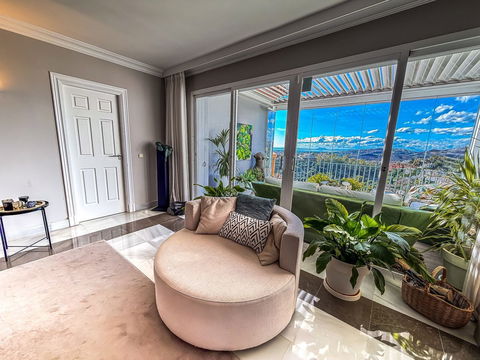 Inside, a welcoming hall leads to a spacious lounge and dining area with stunning panoramic views of our coast, mountains, Gibraltar, and even the mountains of northern Morocco. Enjoy great indoor -outdoor living with a southwest-facing porch featuring an electronic pergola and glass curtains—perfect as a sunny winter room or airy summer retreat. The sunsets from this terrace are really sensational.