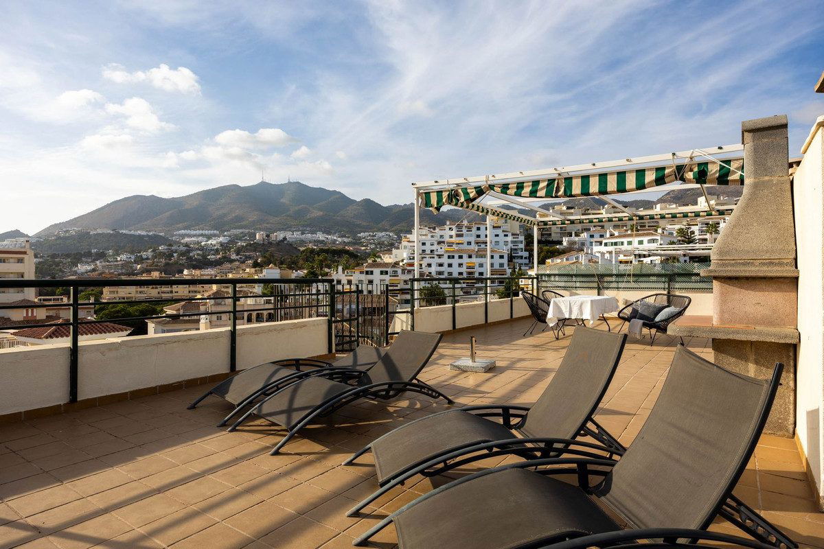 Discover the ultimate Costa del Sol lifestyle with this magnificent 3-bedroom, 2-bathroom penthouse with private roof-top terrace in the sought-after area of Torrequebrada, Benalmádena. This property boasts a privileged location, just a short stroll from the sea and the famous beach restaurant and café, "Yucas". Enjoy unparalleled convenience with all essential services, bus, and train links within easy walking distance, and Málaga Airport only a quick 20-minute drive away. Only 400m from the sea.
