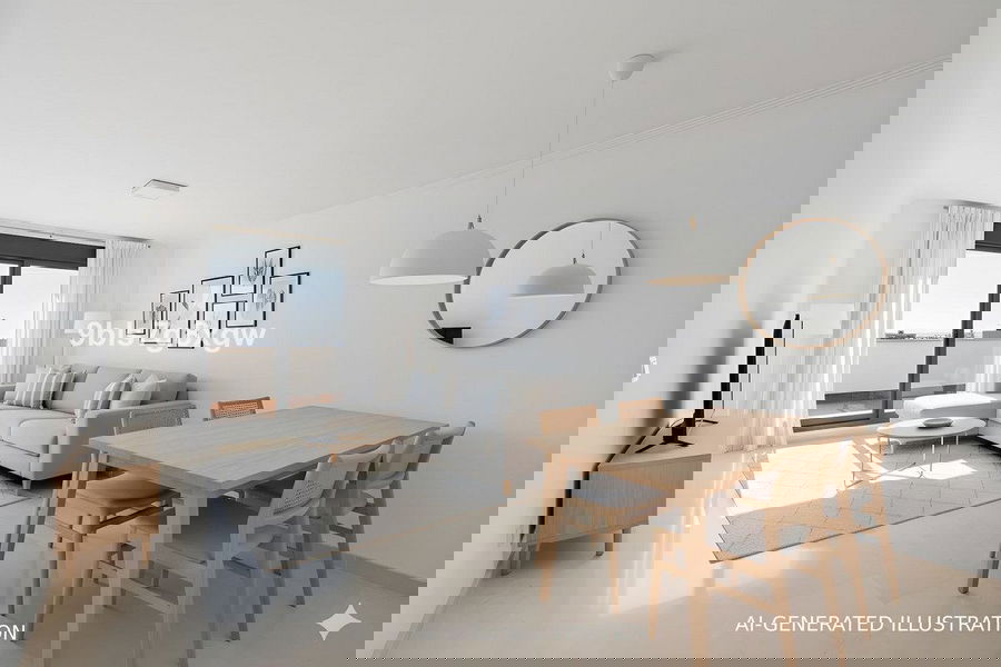 The 58 m² rooftop solarium boasts a built-in barbecue making this space perfect for entertaining family and friends while soaking in the views. The interior is in excellent condition and includes a fully equipped kitchen, a separate utility room, fitted wardrobes in both bedrooms ensuring both comfort and practicality.