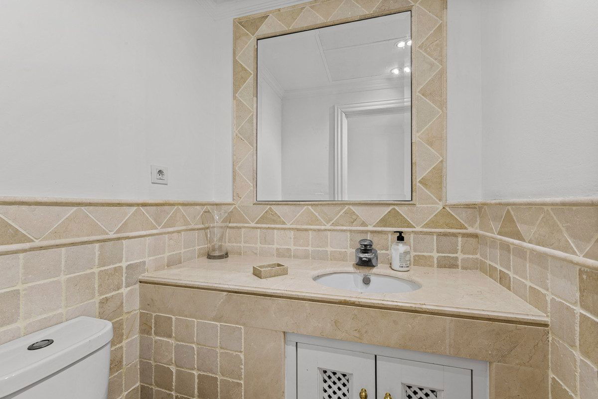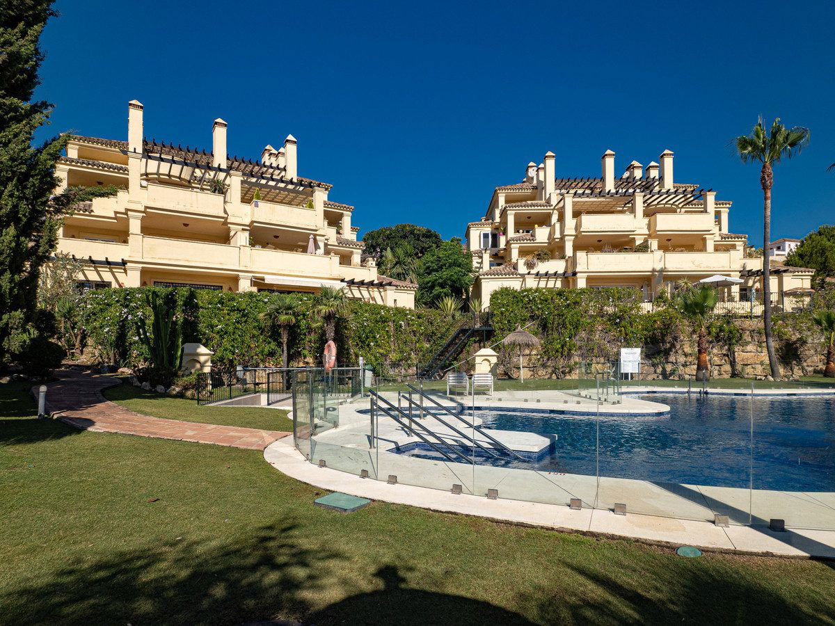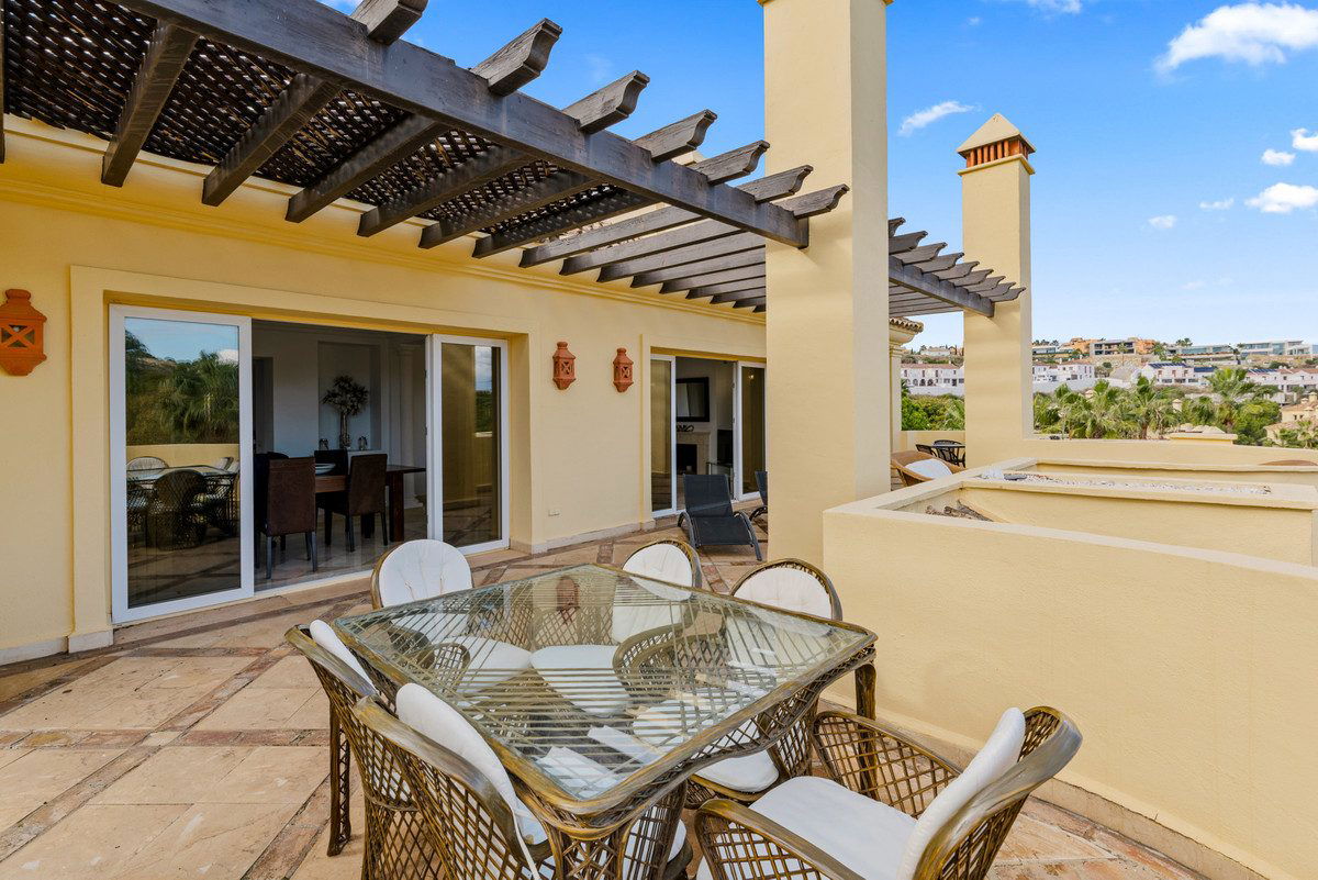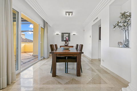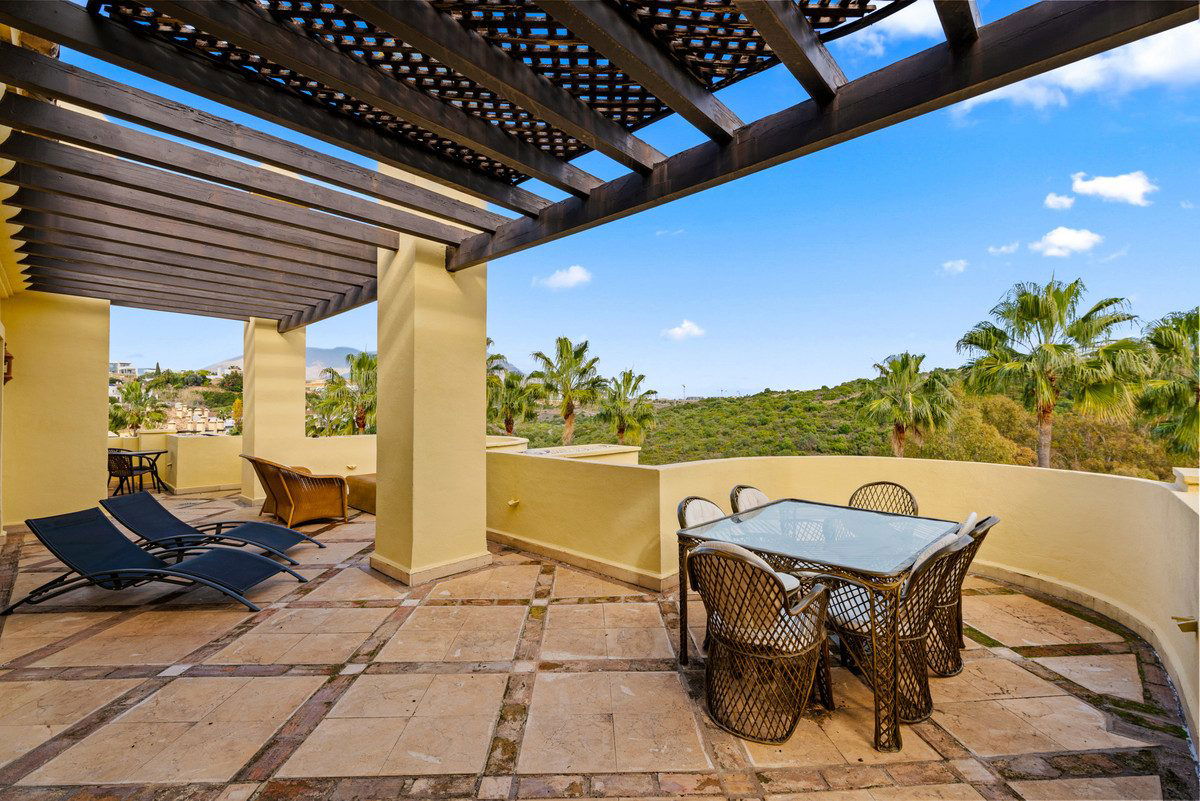 The terrace is mainly uncovered and offers several areas for outdoor dining, entertaining, and sunbathing, while enjoying open mountain views, including Los Reales, as well as some sea views.