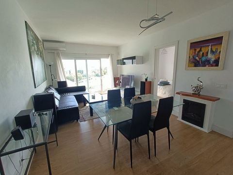 Penthouse apartment on the first floor with closed terrace with panoramic views to the common areas of garden and communal pool. South orientation. It consists of 2 bedrooms, 1 of them with built-in wardrobe. 1 Full bathroom with bath and shower cabin, can be reformed in 2 en-suite bathrooms for each bedroom, each with its own window to the outside to obtain natural light. Kitchen equipped but needs reform. Excellent property as a second residence or holiday or as an investment to obtain good profitability. The common garden areas are excellently maintained with gardeners from the community. Possibility of having Internet / WIFI with Fiber Optics. IBI and Water expenses included in the community fee.