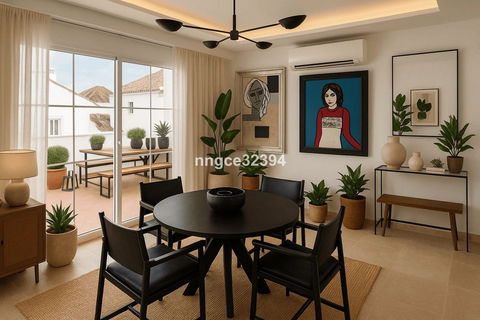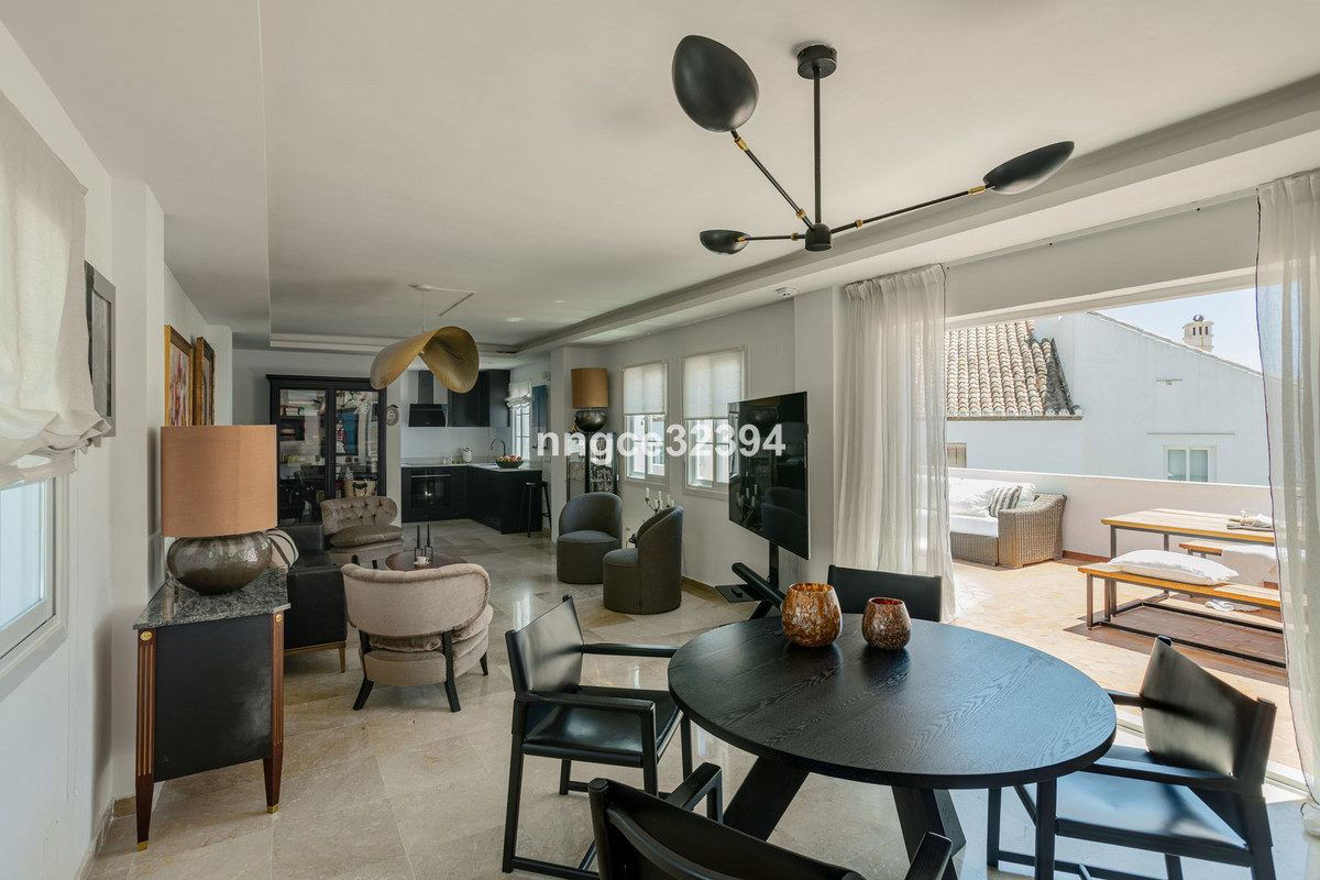 Discover coastal sophistication in this beautifully reimagined 2-bedroom, 2-bathroom penthouse on the New Golden Mile. Nestled within a quiet, gated, charming pueblo-style community in Benamara, this top-floor gem offers a rare blend of artistic design, modern comfort, and effortless beachside living. This penthouse is located just a few minutes' walk to Salduna Beach and only 10 minutes by car to the glitz and glamour of Puerto Banús.