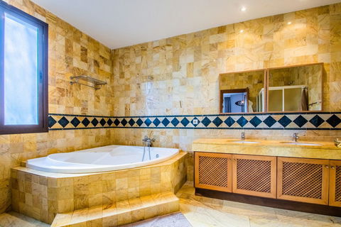 There is a large terrace on each floor with magnificent views to the sea. You also have a Jacuzzi on the upper terrace and an extra room which can be either used as another bedroom or office/study.