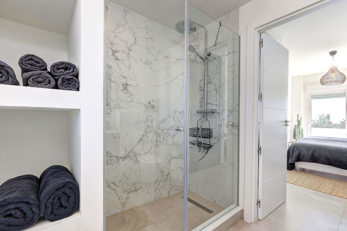 The location is simply unbeatable. With direct access from your garden to the promenade and beach, the sea is literally at your doorstep. A shopping center is within a one-minute walk, and a direct bus to Málaga Airport stops nearby. Estepona's charming old town, filled with cafés, restaurants, boutiques, and authentic Spanish character, is just a short stroll away.