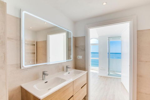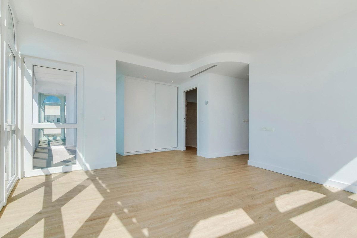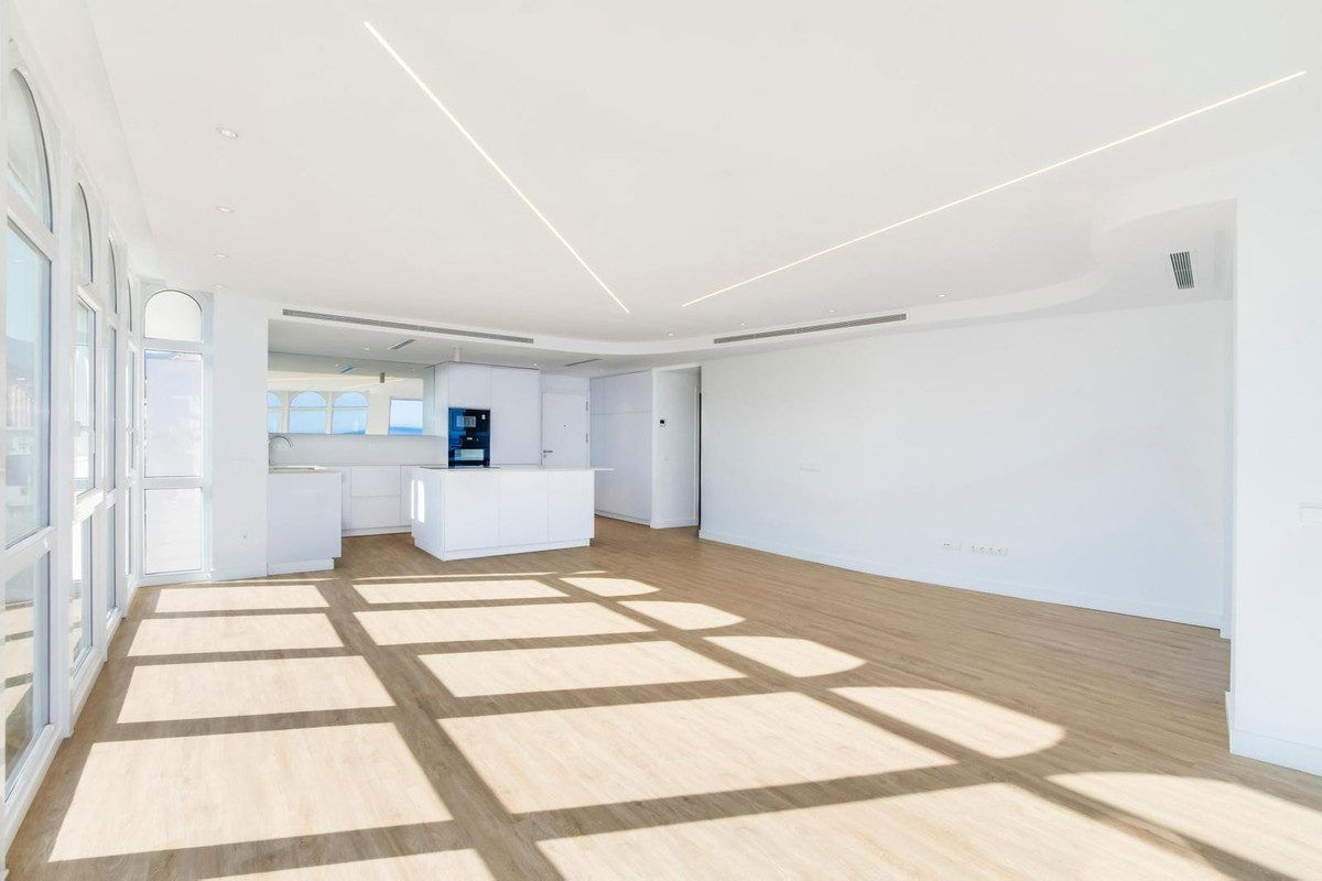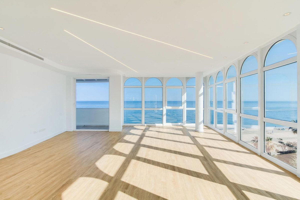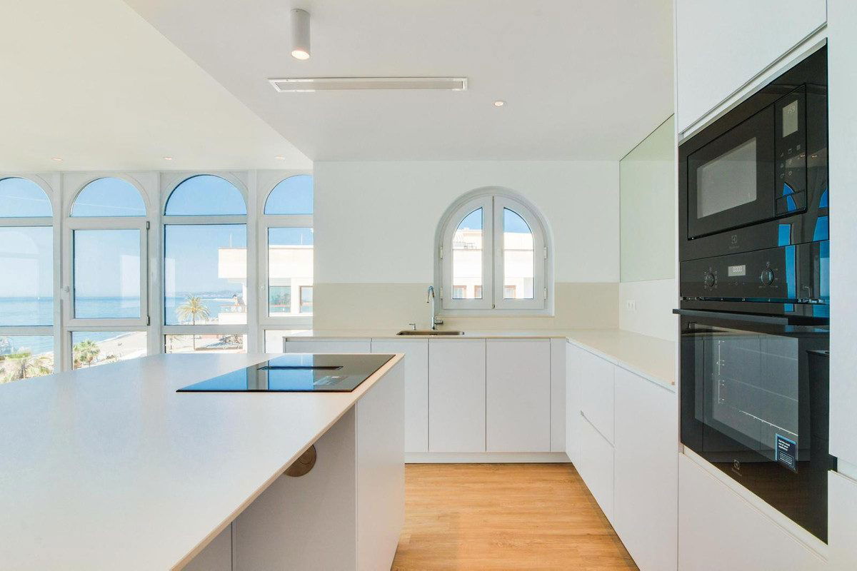 Stunning, south-facing fully renovated, three bedroom beachfront apartment in the heart of Estepona's charming Old Town offering spectacular panoramic sea views. With a large usable space, the home blends elegant modern finishes with high-end Electrolux appliances in an open-plan kitchen and living area that flows onto a spacious terrace overlooking La Rada beach. The master suite includes a luxurious en-suite bathroom, a large dressing area, and direct terrace access, while the additional bedrooms also boast beautiful sea views and share a stylish second bathroom. The apartment includes ducted air conditioning with room-specific controls, floor-to-ceiling double-glazed PVC windows for maximum light and insulation, and a large private underground parking space. Just steps from restaurants, shops, schools, and public transport, this exceptional property combines beachfront living with urban convenience in one of Estepona's most privileged locations.