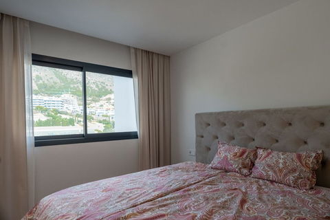 From the moment you step inside, the stunning sea views capture your attention. The open-plan design seamlessly connects the high-specification kitchen and living area, featuring top-of-the-line appliances. This space opens onto a charming rear terrace, perfect for enjoying serene mountain vistas. The main living area flows effortlessly onto the spectacular 100 sqm primary terrace, a true outdoor haven. Here, a private swimming pool awaits, surrounded by ample space for a lounge area, dining spot, sunbeds, and a barbecue—designed for both relaxation and grand entertaining.