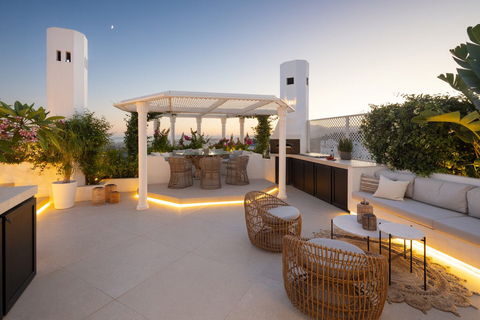 This luxury renovated penthouse for sale in Jardines Colgantes offers a rare opportunity to acquire a modern Mediterranean home in one of Marbella's most prestigious residential enclaves. Designed for discerning buyers who value both architectural quality and a serene lifestyle, this duplex penthouse combines contemporary sophistication with timeless elegance. Panoramic sea views and a privileged hillside setting create the perfect backdrop for refined living in Marbella Hill Club, one of the most sought-after areas above the Golden Mile.