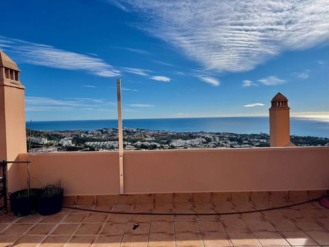 Views & outdoor space are one of the most sought after features of an Andalusian property by foreign property buyers. This property has some of the most amazing views one can get and also with its large main terrace and then its upstairs solarium this property has a lot of outdoor terrace space that really allows one to enjoy the Spanish climate. The apartment itself has three bedrooms and two bathrooms plus a larger than average kitchen. The complex is gated with private parking for owners and three pool areas. Calahonda is well located being just 15 minutes from Marbella by car and 15 minutes to Fuengirola. We strongly recommend a viewing of this property and as we hold the keys we are able to show it 7 days a week.