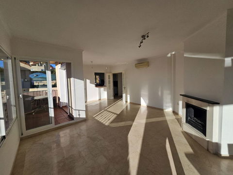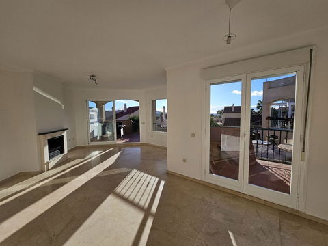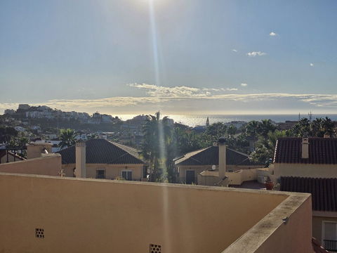Exceptionally bright and attractively priced semi-detached villa in Riviera del Sol. Distributed over three floors, this property offers 3 bedrooms, 2 full bathrooms and a guest toilet, as well as a living room, separate kitchen, private garage and a garden of almost 70 m2. It includes marble flooring, a small storage room under the stairs, two terraces plus a solarium with sea views totaling approximately 30-40 m2. The house faces south/southeast and is located within a gated community with communal swimming pools and easy access to the Riviera del Sol bus stop. With a constructed area of 151 m2, this is a fantastic opportunity.