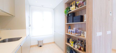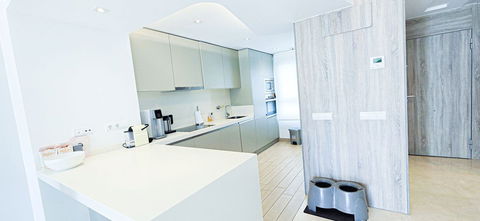 Premium Kitchen:Sleek resin worktops, high-end appliances.
