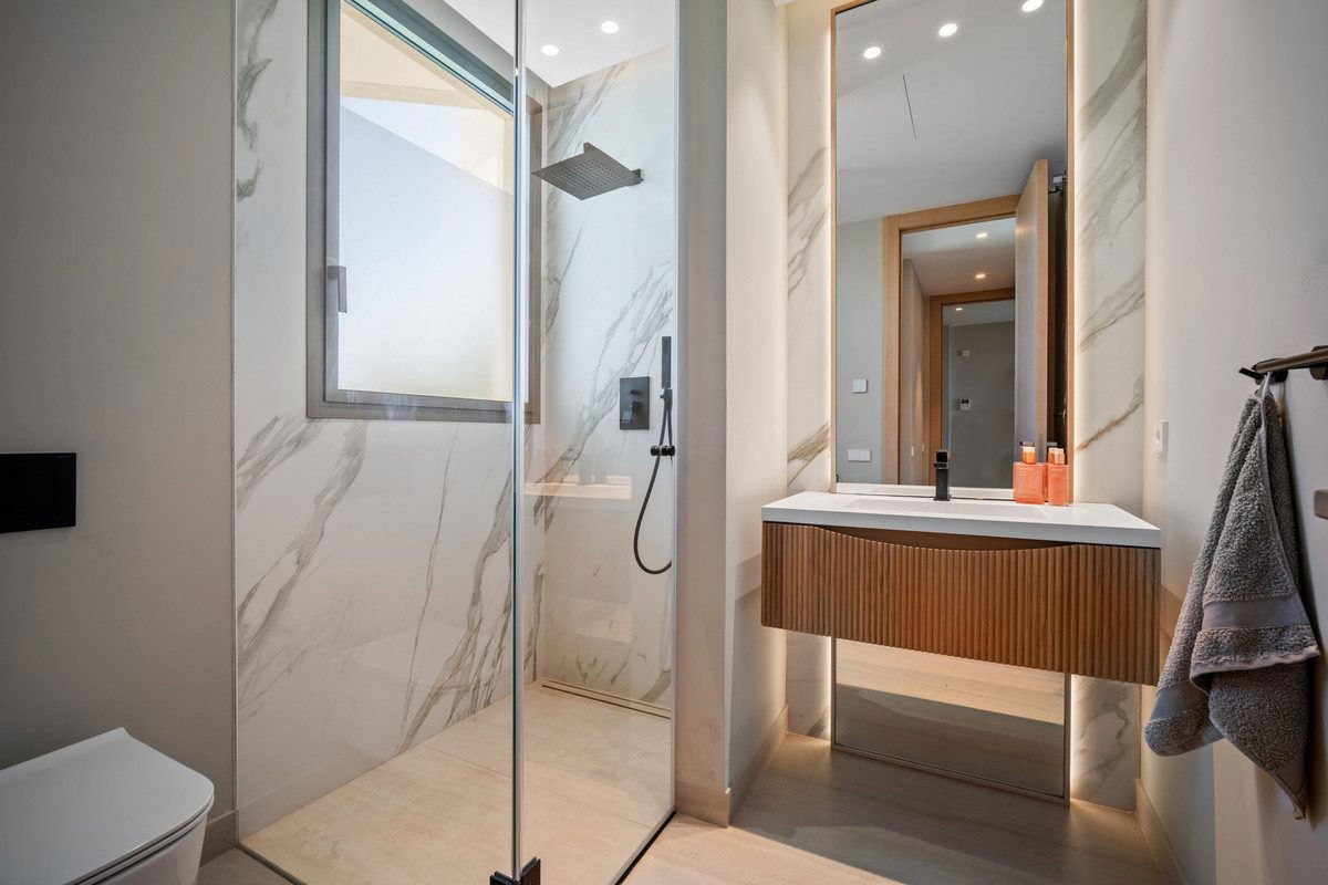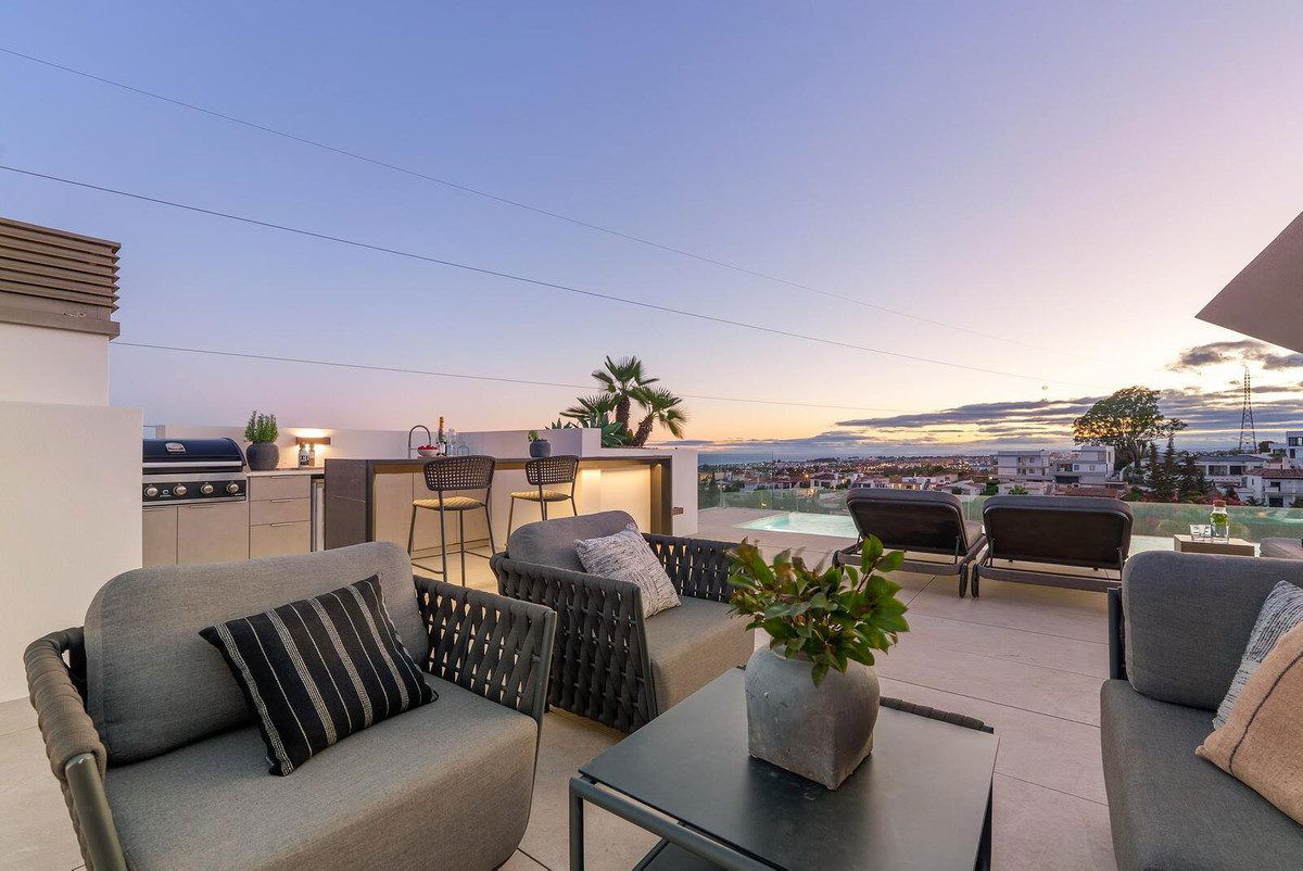 Designed to blur the boundaries between indoor and outdoor living, the residence features an expansive covered terrace ideal for dining and entertaining with family and friends. The bespoke rooftop solarium, complete with a private pool and breathtaking panoramic views over the Mediterranean Sea, Gibraltar, Africa, and Marbella's iconic La Concha mountain.
