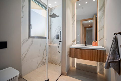 This architectural masterpiece impresses with its bold geometric lines, sophisticated design, and harmonious use of high end quality materials in neutral tones. Thoughtfully configured with four spacious en-suite bedrooms, the villa offers flexibility to adapt seamlessly to your lifestyle needs.