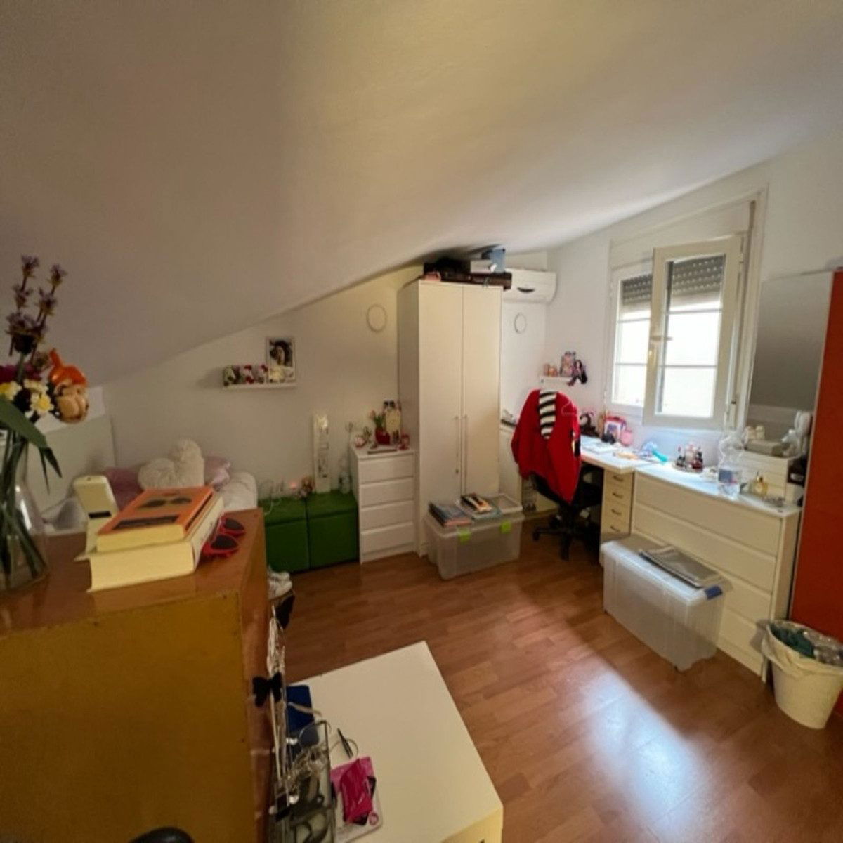 The duplex is located in a building with an elevator and is adapted for people with reduced mobility. It also has air conditioning and electric heating via a hot/cold pump, ensuring a pleasant environment year-round. The kitchen is fully equipped, ready for you to move in and start enjoying your new home.