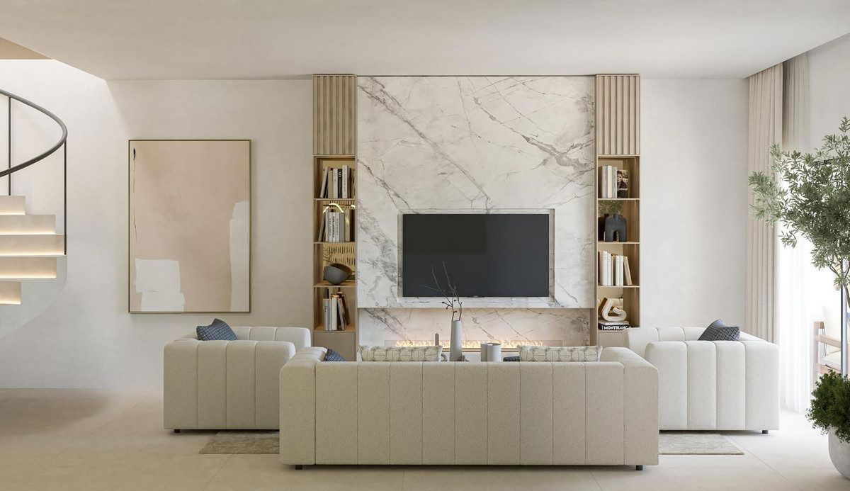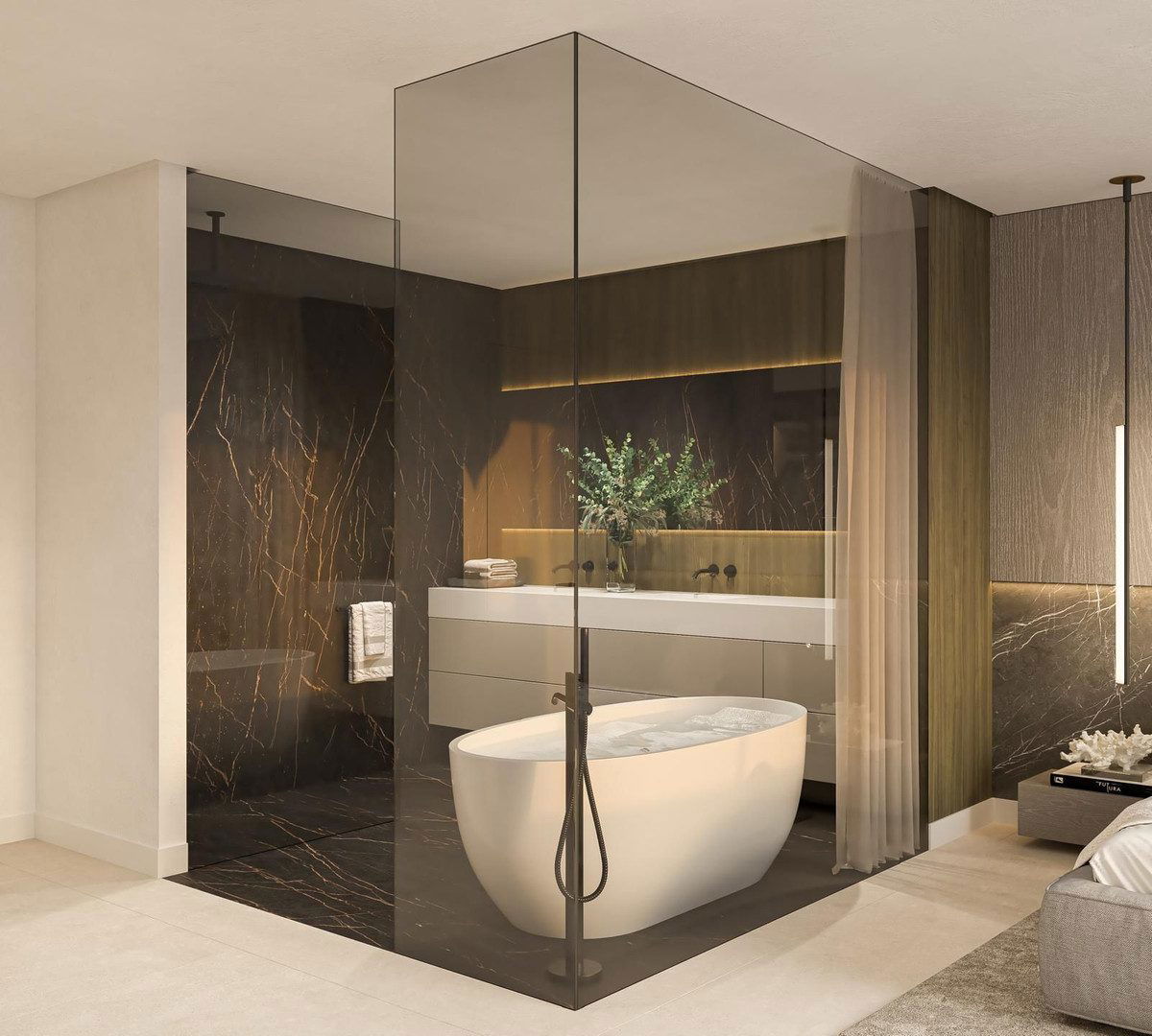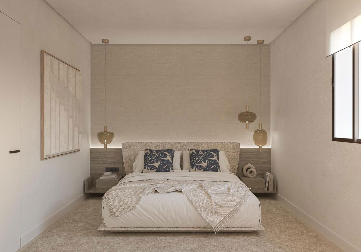This property is been designed with the owner in mind, originally a four-bedroom property has now been made into a three-bedroom by opening up two bedrooms into one, resulting in one of the most awe-inspiring master bedrooms. With a 15 square meter custom made open wardrobe area, state of the art Porcelanosa bathroom suite, media TV wall with fire place, sea views of Africa from the bed, and a beautifully furnished full width private terrace. A further two stunning double bedrooms and bathroom complete the first floor.
