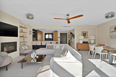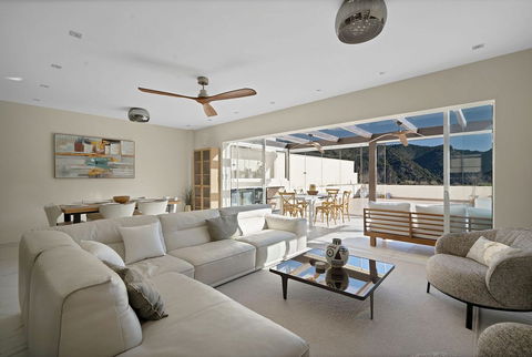 The spacious open-plan living area and modern kitchen benefit from glass curtain enclosures, creating a bright, extended living space filled with natural light. From both the lounge and the terrace, you can enjoy stunning open views.