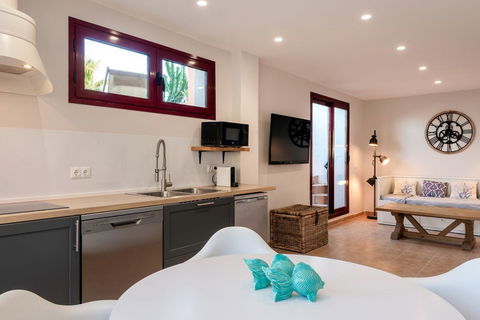 The fourth bedroom is located on the garden level and has an independent exit to the garden. It is a studio of approximately 45 m2 with a kitchenette, living area and a bathroom equipped with a shower. This is an ideal additional option for residents, guests or subletting part of the property. The house has a touristic license.