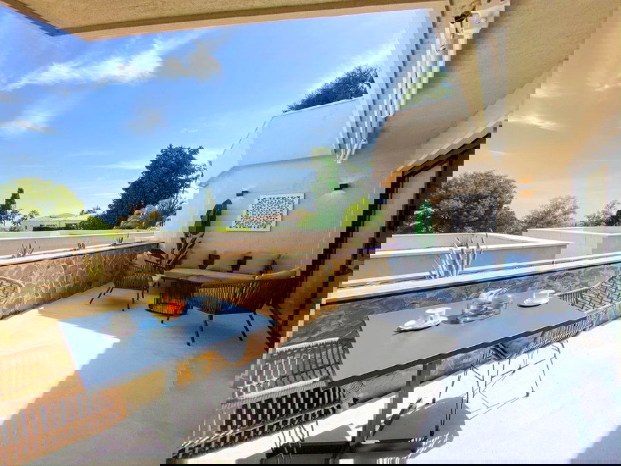 The property offers a bright and airy living and dining area that flows seamlessly onto a private sunny terrace, where panoramic views create the perfect backdrop for relaxation or entertaining. A fully fitted kitchen and two generously sized bedrooms provide both practicality and comfort.