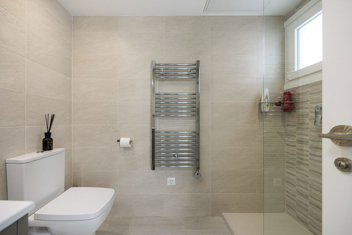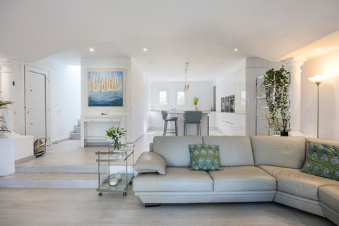 This beautifully renovated townhouse offers modern design and comfort. It includes three bedrooms, two bathrooms, and a guest toilet. The master bedroom has an ensuite with underfloor heating, which is also available in the guest bathroom.