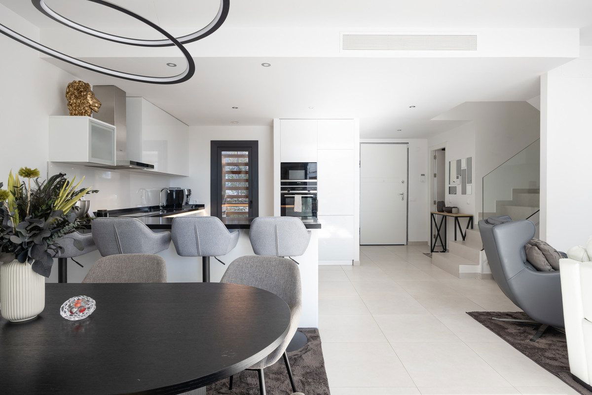 This townhouse in Los Miradores del Sol, Bel-Air Estepona, is one of the very best units in the community, built in 2022 and presented in excellent condition with high-quality materials throughout. It offers a smart layout and generously sized bedrooms.