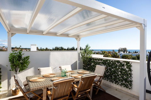 The highlight of the property is the large rooftop solarium – a private oasis with stunning sea views and sun all day long. With plenty of space for a dining area, lounge, and outdoor kitchen, it is the perfect place for relaxing, entertaining, and enjoying Marbella's sunsets.