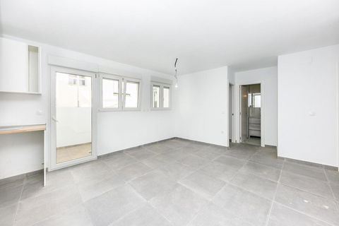 It features a spacious living room with open-plan kitchen and direct access to a rear patio, perfect for outdoor living, 4 bedrooms, 2 full bathrooms, and a private garage space included.