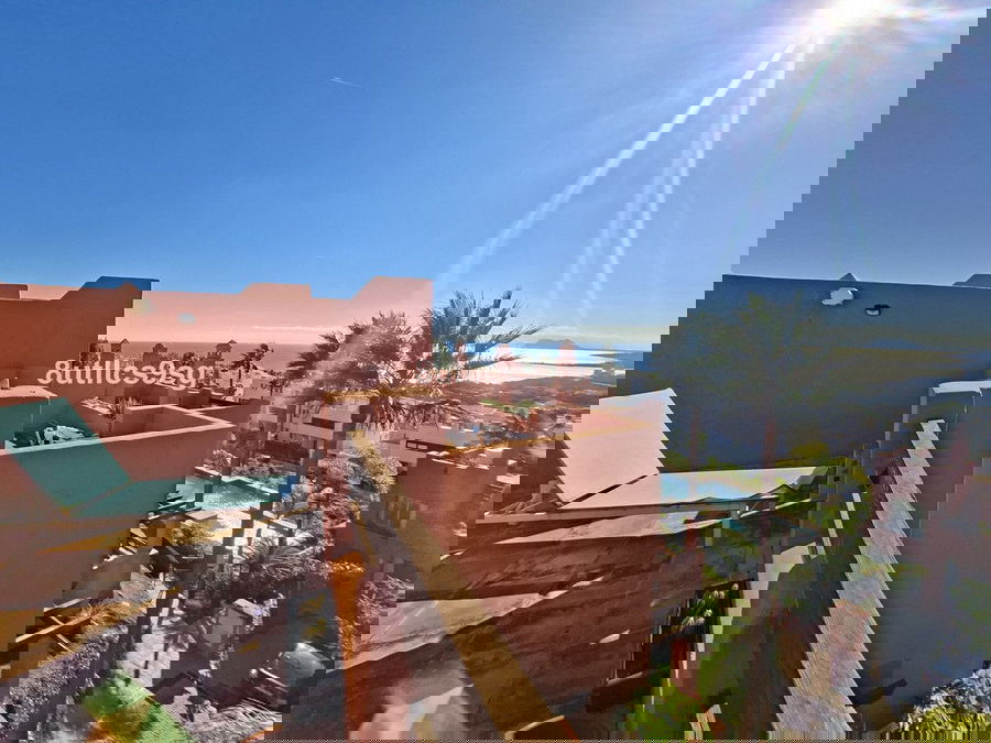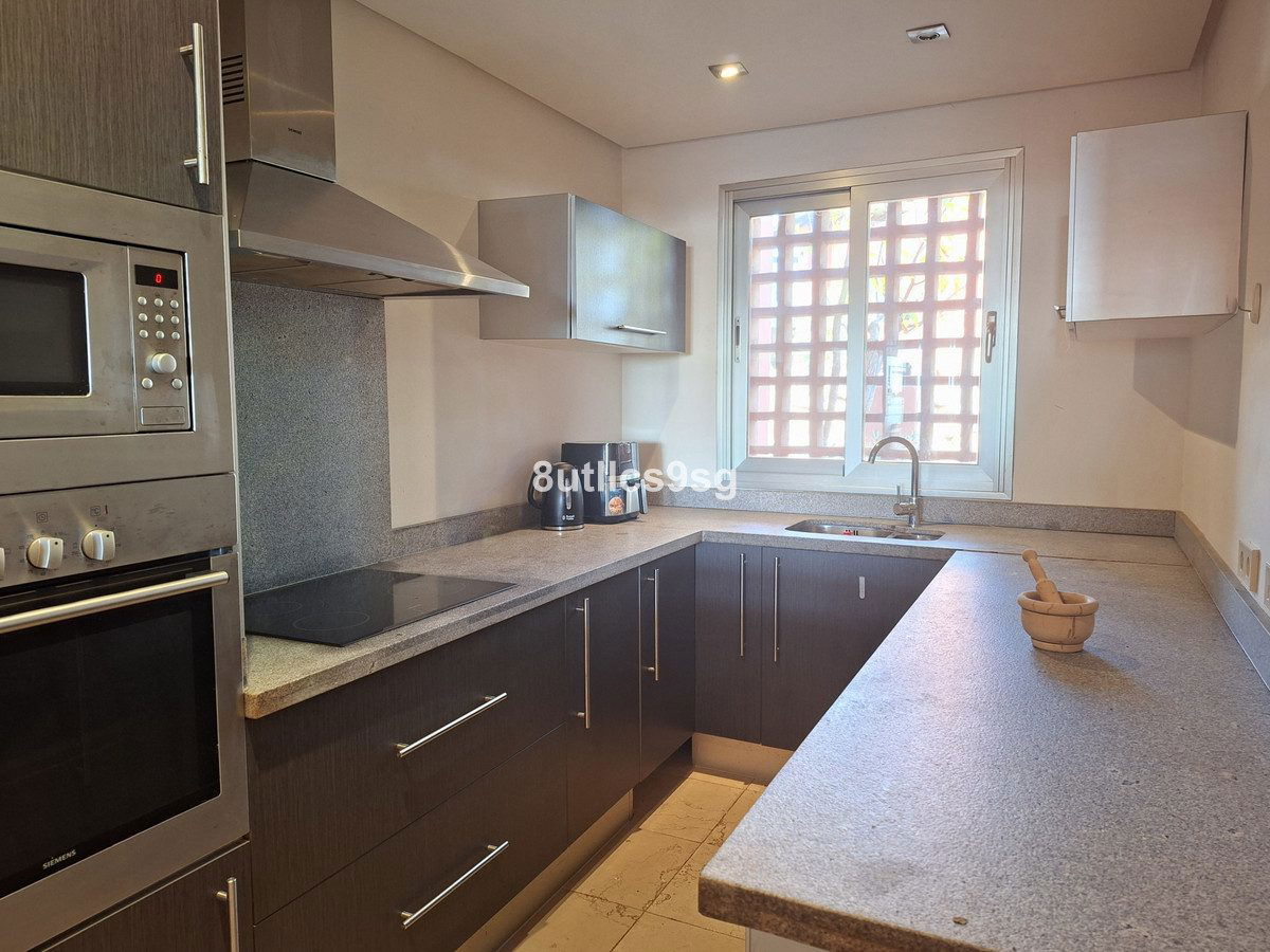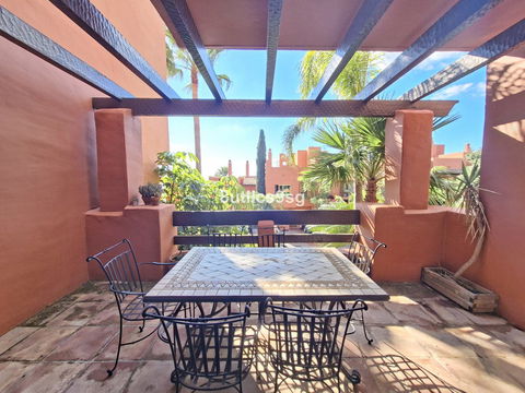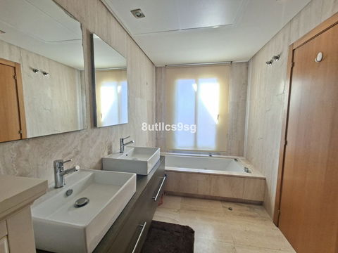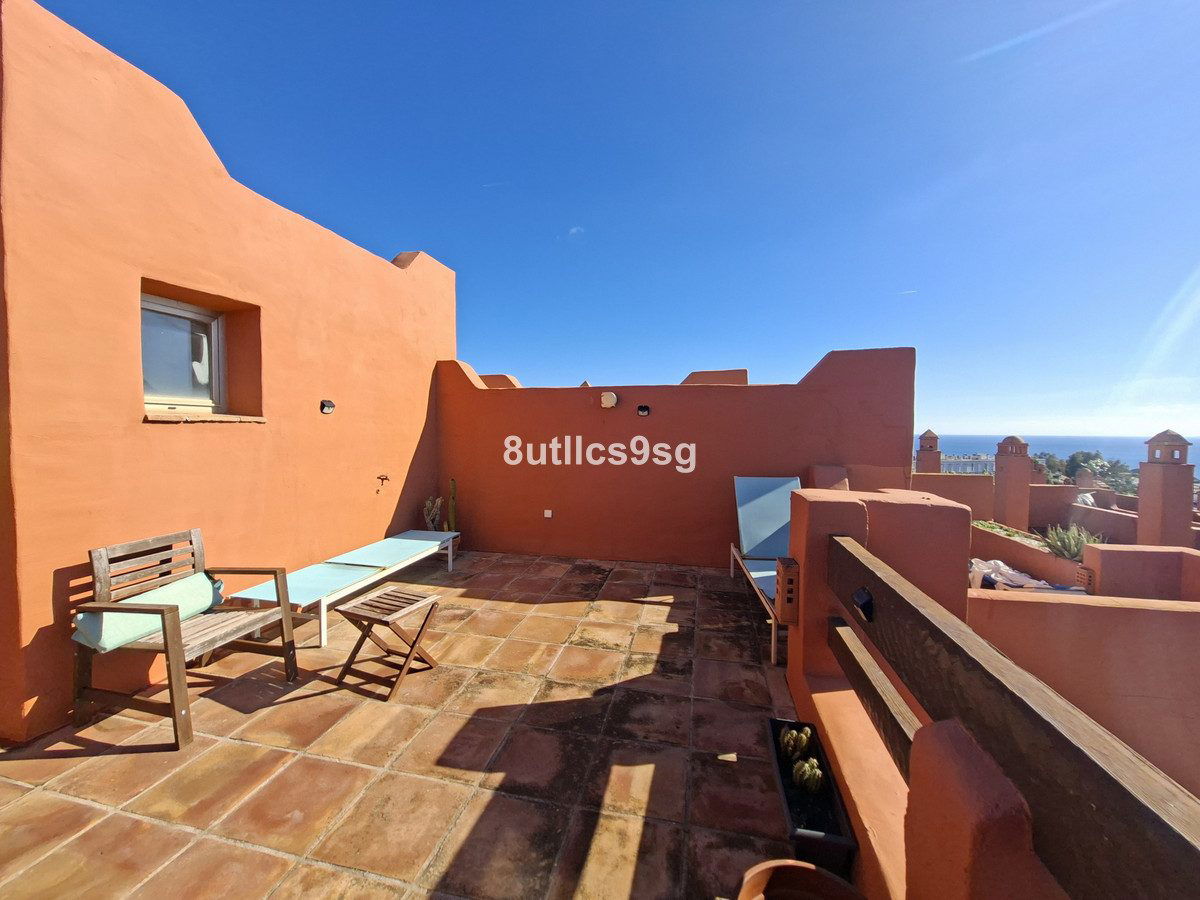 Townhouse in Bahia de Las Rocas, two minutes from Sotogrande, with two bedrooms with two en suite bathrooms (one with Jacuzzi) and a guest toilet. Spacious living room with access to the terrace overlooking the sea, Gibraltar and African coast. This townhouse has three floors and a basement that can be converted into a bedroom, game room, etc. ground floor with living room, fully equipped kitchen and guest bathroom, first floor with two bedrooms and access to a large solarium with stunning views. The property has fitted wardrobes, hot / cold air conditioning and carport. The urbanization is gated and has beautiful gardens and pools for adults and children.