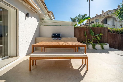 A newly renovated 2 bedroom end of terrace house in the heart of Nueva Andalucia. Located in one of the most prestigious communities, Los Naranjos Country Club, a gated community with security, 2 pool, a tennis court and located frontline of Las Brisas Golf Course.