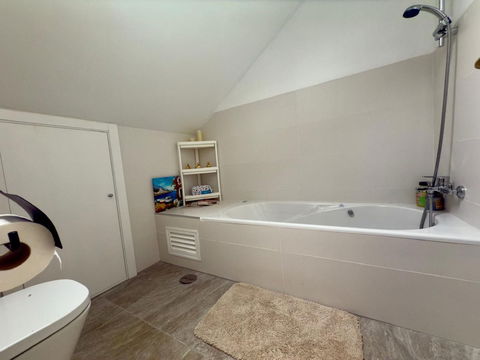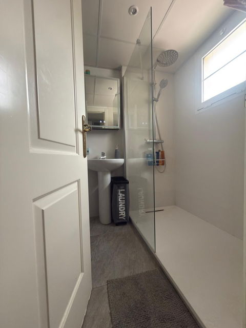 – The entrance hall leads to a modern bathroom equipped with a shower and washer/dryer.