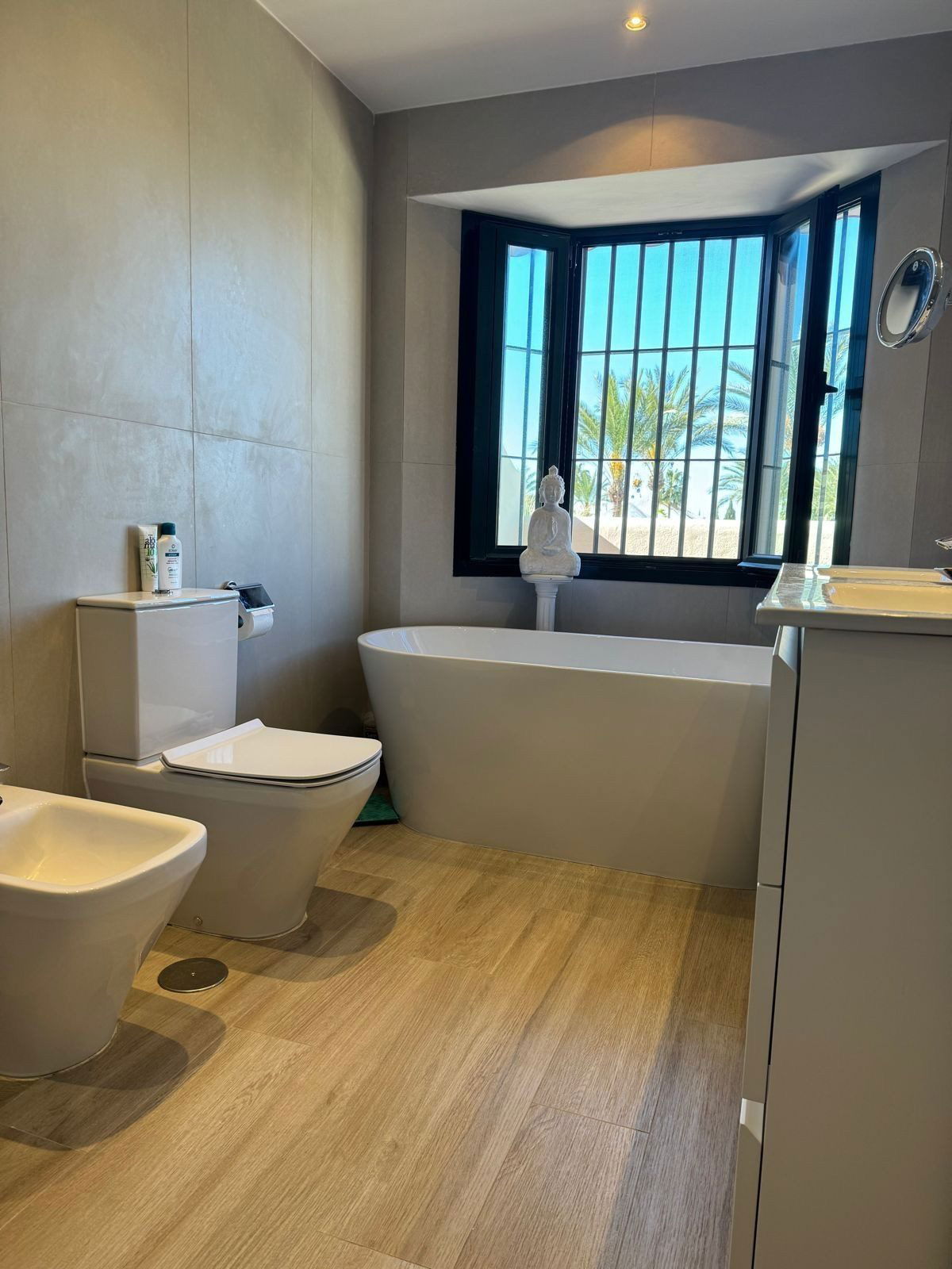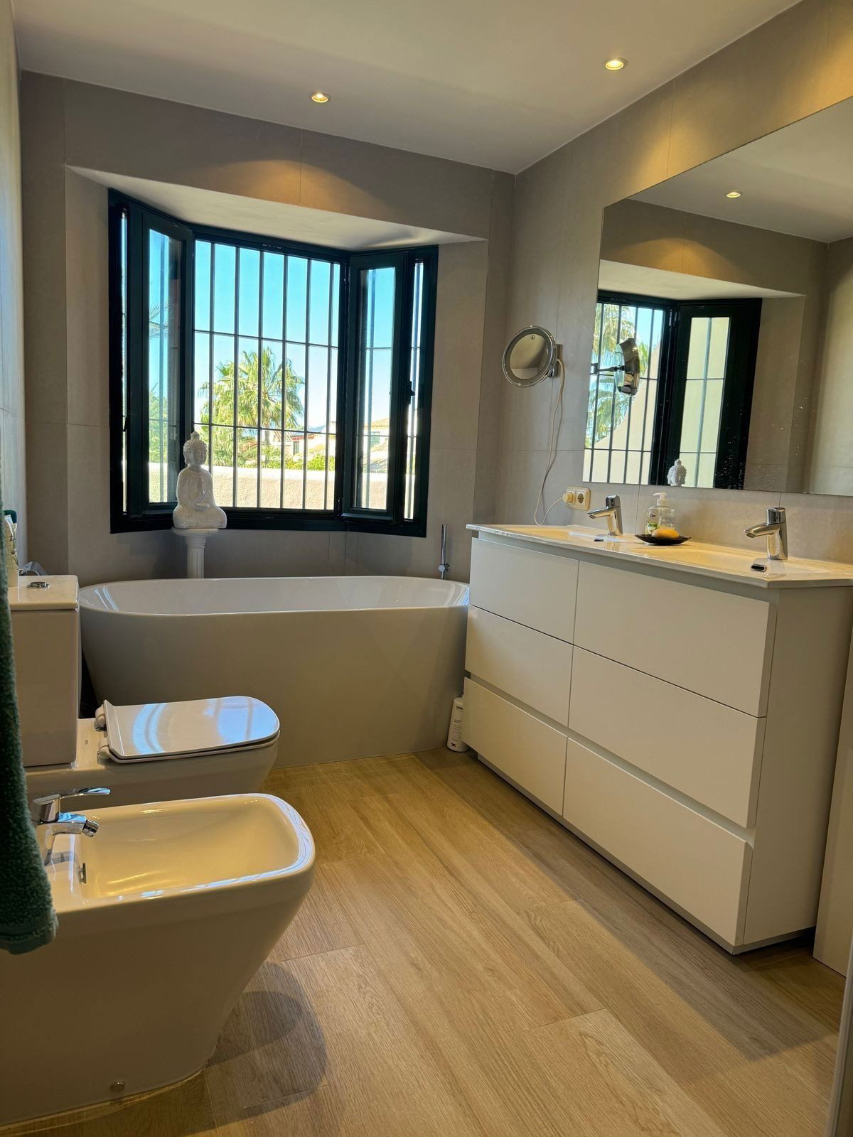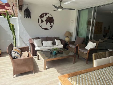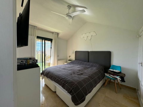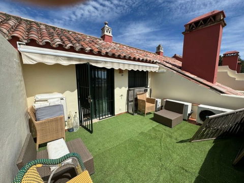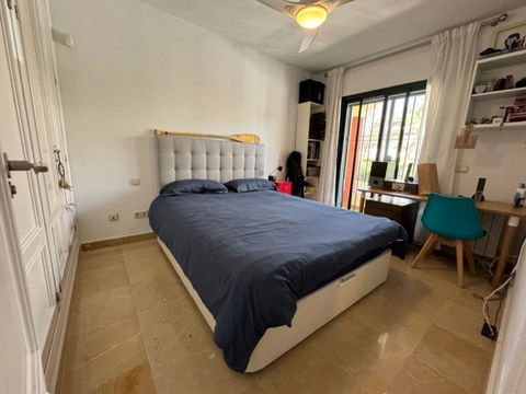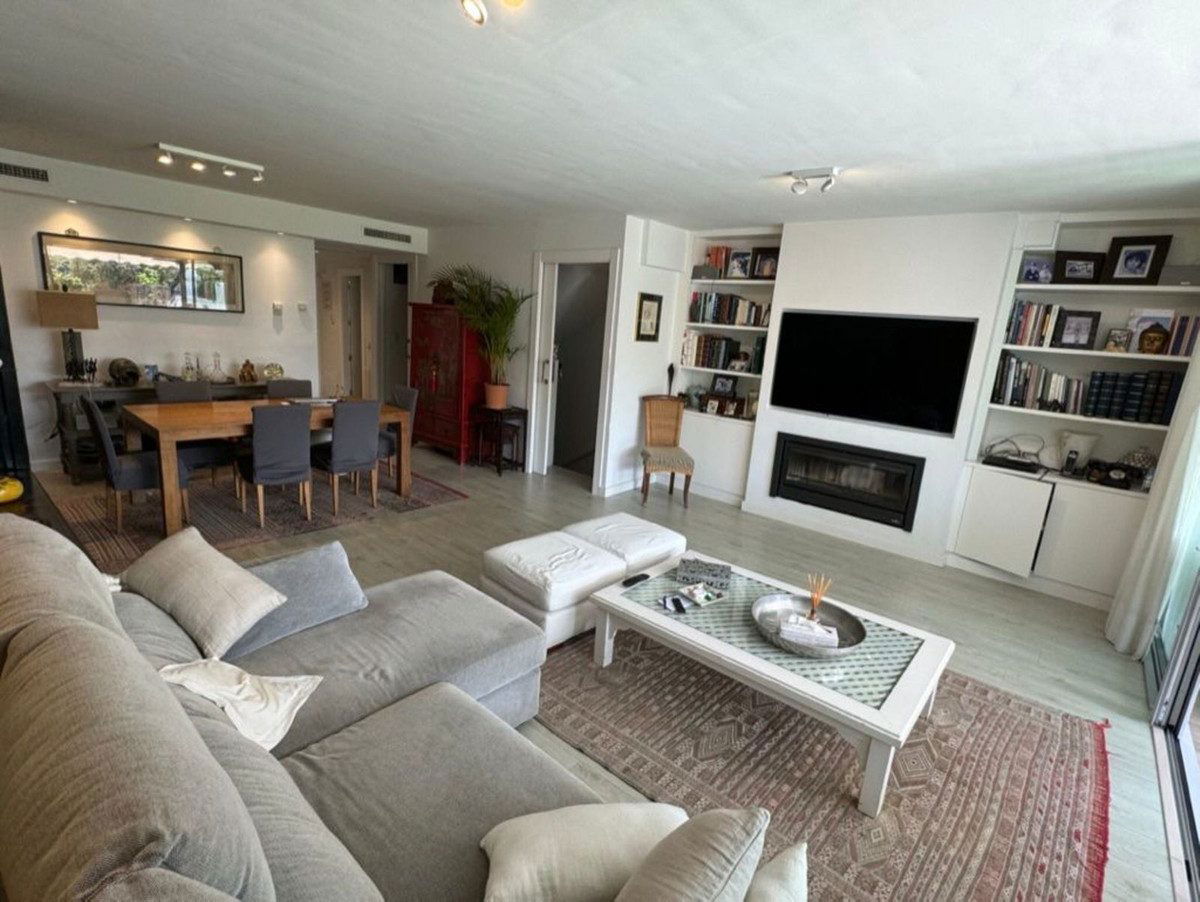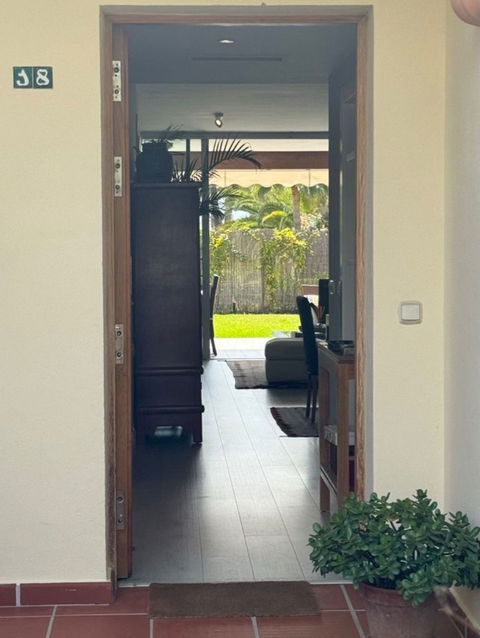 This south-facing townhouse is located in the prestigious Golden Mile area of Marbella, a stone's throw away from the luxurious Puente Romano and Marbella Club hotels, along with their exclusive beach clubs. It's also conveniently close to the heart of Marbella and the chic Puerto Banus. Set within a securely gated community that merges modern design with classic Mediterranean flair, this property is surrounded by beautiful, lush gardens featuring palm trees and offers access to two swimming pools.