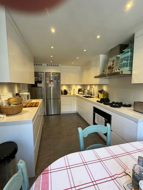 The townhouse is spread over three floors, in addition to a rooftop terrace, all finished to a high standard. On the ground level, you'll find a generously sized living and dining area that opens onto a spacious porch and a private garden, a fully equipped kitchen, and a guest bathroom. The first floor hosts the master suite, complete with an en suite bathroom and a private terrace, as well as two additional bedrooms, each with their own balcony, sharing a bathroom. The rooftop terrace is a real highlight, offering a built-in barbecue and breathtaking sea views.